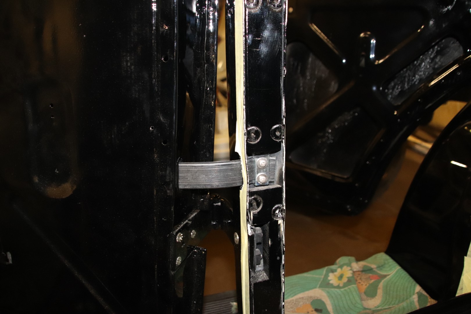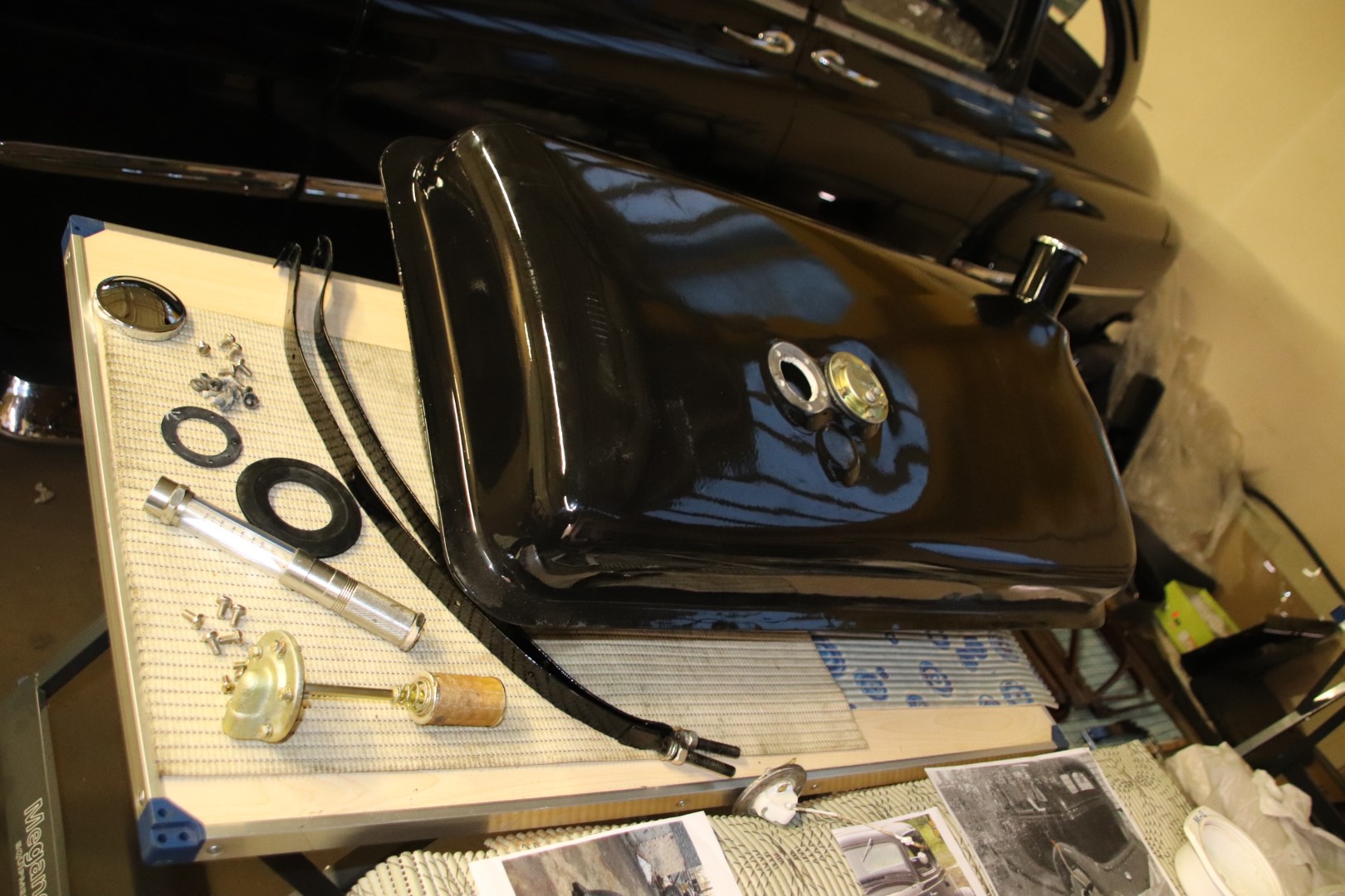 Tõenäoliselt on kogu uste ja külgede polster sellel autol vahetatud. Lihtsalt aeg on teinud oma töö. Kuna erilisi vahendeid pole sellesse tahetud panna, siis töö küllaltki üle p.... tehtud. Mõnedele üksikutele piltidele, mis avatud ustega M1-st tehtud, tuginedes, püüame ajaloolist originaalsust jälgida. St. jälgida tolleaegset tegumoodi. Tohutu probleem saab olema laega. Ei osatud ju tollal selliseid suuri pindasid välja stantsida ja nii siin kui sealpool Atlandit olid autod present katustega. Esimesed täis metall katuse autod olid N.-Liidus ZIS 110 ja Pobeda. USA-s jõuti selleni 1935 - 1937 aastatel. Eks kui selleni jõuan, siis ka tuleb teemaks. Mingid fragmendid on säilinud ka tulemüüri katvast kartongist. Eks nende järgi saab ka aimu, mis ja kuidas.