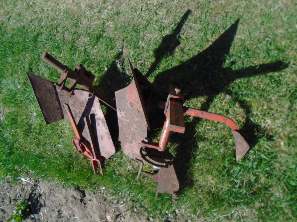 Piltidel näha üks sahk, esimesed katsed sai tehtud kahe sahaga. Aga kui sarviku rööbe ja sahkade laius ei ühti, siis on tegemist üsna värdjaliku kooslusega. Kuta ümberehitusteta rööbe on max 480mm, sellise laiusega vagu tekitada on, noh, vähemalt naljakas. Sai siis üks sahk küljest võetud ja allesjäänu keskele nihutatud. Aga ikka pole hea, sest kooslus on väga raskesti juhitav kui mitte juhitamatu. Vaod said kõverad ja varieeruva laiusega Sad Lõpuks sai mehhaniseerimise eksperimentidest villand ja "kudusin" valmis lihtsa äraproovitud asjanduse. Teeda tõmbas eest, baaba lükkas tagant ja nii need vaod tulivadki.
