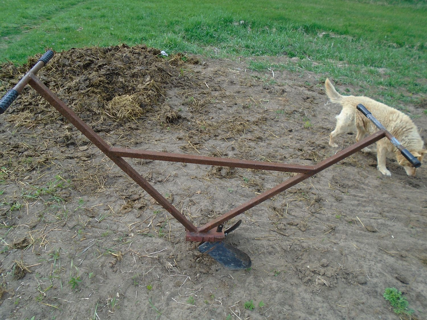 Piltidel näha üks sahk, esimesed katsed sai tehtud kahe sahaga. Aga kui sarviku rööbe ja sahkade laius ei ühti, siis on tegemist üsna värdjaliku kooslusega. Kuta ümberehitusteta rööbe on max 480mm, sellise laiusega vagu tekitada on, noh, vähemalt naljakas. Sai siis üks sahk küljest võetud ja allesjäänu keskele nihutatud. Aga ikka pole hea, sest kooslus on väga raskesti juhitav kui mitte juhitamatu. Vaod said kõverad ja varieeruva laiusega Sad Lõpuks sai mehhaniseerimise eksperimentidest villand ja "kudusin" valmis lihtsa äraproovitud asjanduse. Teeda tõmbas eest, baaba lükkas tagant ja nii need vaod tulivadki.