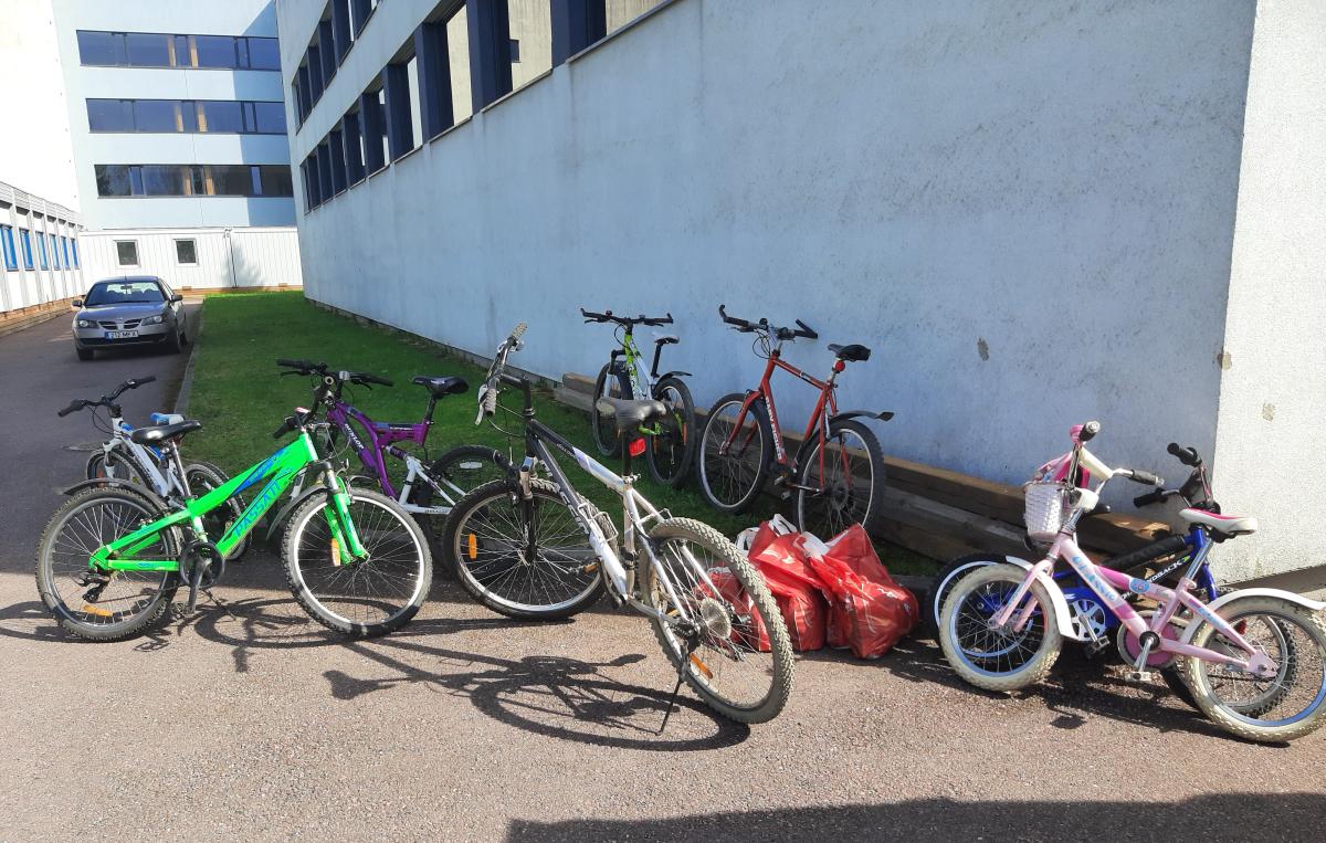2 esiplaanil olevat lastekat on nö. igaksjuhuks kaasas, ülejäänud 6 peaks täna saamavälja jagatud. Need 6 ratast olid algselt üsna nutuses seisus, kuid ksf. MeelisV toetusega said nad Velospetsis korraliku hoolduse. Vahetati trosse, rehve/lohve, piduriklotse, laagreid jne. ja nüüd on sellises korras, et ei ole nendega häbi sõita ega häbi kellelegi kinkida.