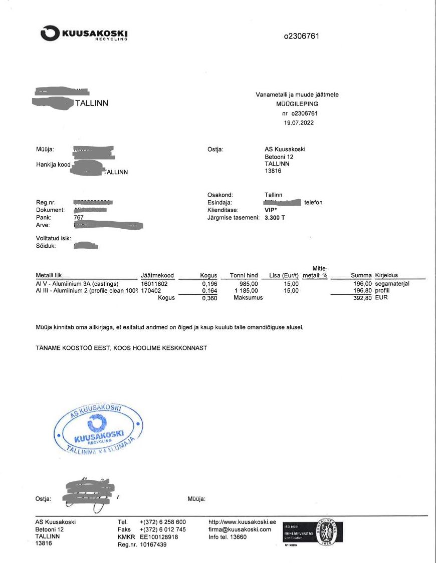 Nende 20 labida hankimiseks oli vaja lihtsalt sõita Põhja-Tallinnast kaubikuga Muugale, korjata üles suurem koorem taarat ksf. h.... juurest, sõita Laagri Maksimarketi taarapunkti, oodata 2 tundi oma järjekorda ja seejärel taara raha vastu vahetada. Puudujääva summa katsime koos ksf. Nastikuga kogutud vanarauaga, mille viimast ja suhteliselt kesist laekumist hoidsime seemneks, et hankida Ukrainasse saatmiseks maastur.