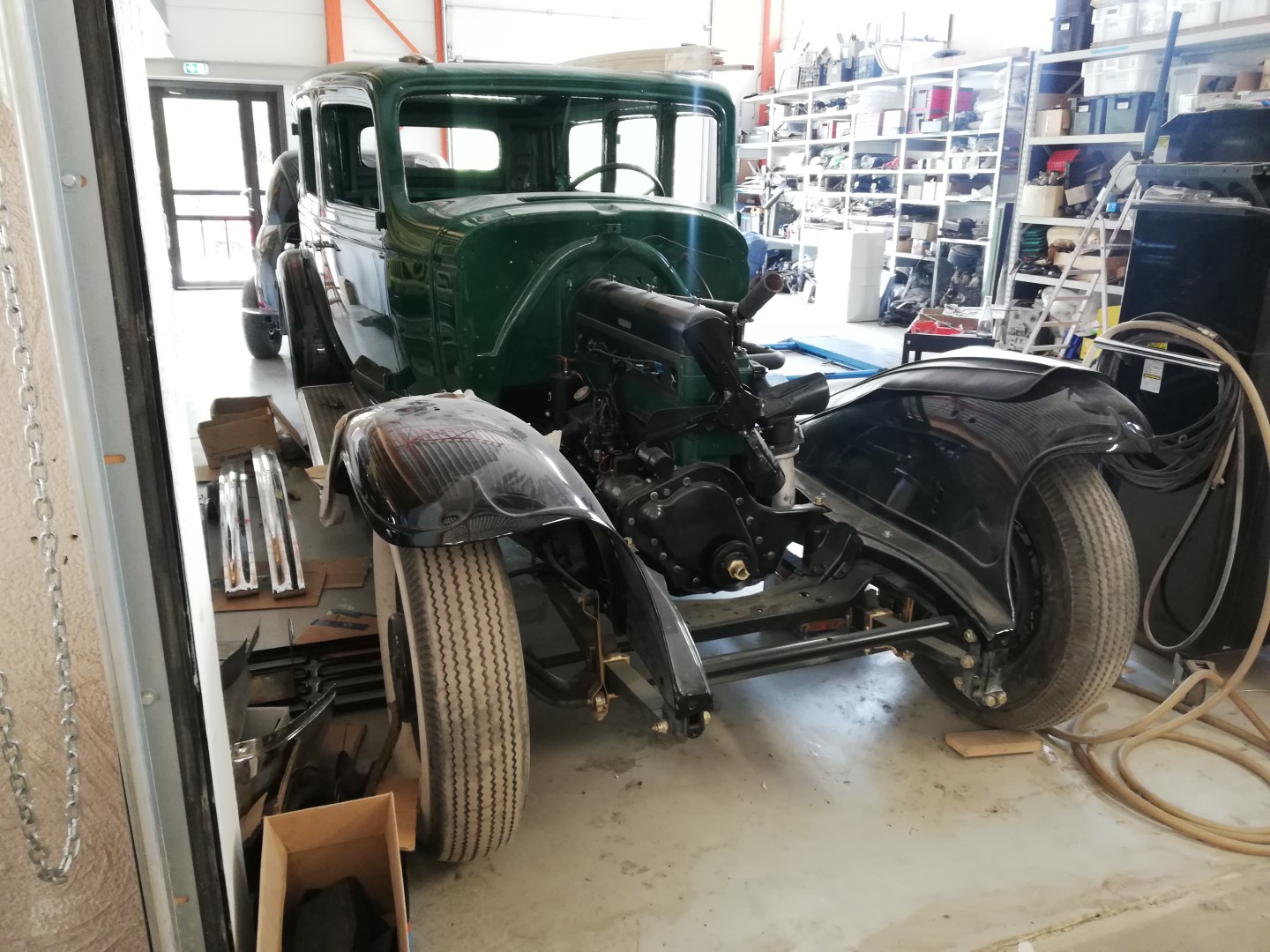 L-1 kallal nokitsemine jätkub ja koos sellega nimekiri igasugu puudu olevatest vidinatest. See saab muidugi eriline peavalu olema, sest saada sellele autole pole suurt midagi. Põhja plekid said mingite jäänuste järgi uued tehtud ja parempoolsel sai poolt olemasolevat kasutatud. Tolle aja autodel pagasnikuid polnud ja kasutati taga olevat resti, kuhu pandi siis kohvrid, mis rihmadega kinni tõmmati. See rest sai ka nüüd taastatud ja paigaldatud. Auto tankimiseks tuleb see rest üles tõsta pildil olevasse asendisse. Radikas on valmis aga ribid on veel taastamisel ja värvimisel. Neid ei saa enne järgmise nädala lõppu kätte. Siis saaks ka esiosa kokku laduda.