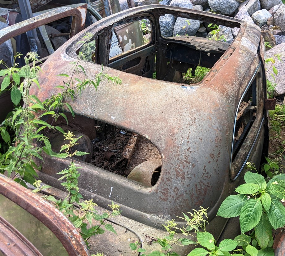 Esimesi DKW pilte vaadates tunduski, et seal on seda kraami veel. Tundub sama masinapark, mis kunagi Tartus Viljandi maanteel ühel territooriumil ülesse rivistatud oli. Samas mõtlesin ka selle Peugeot peale, mida esimest korda põrsapõlves Võru lähedal seismas nägin. Läks millegipärast hinge see stiilne disain. Kahekohaline mudel pole 402, vaid DK5, mis oli esivõre pealt loetav, kui see veel küljes oli (vt http://eag.vanatehnika.ee/a-pr/PeugeotDK5-b.jpg). See on masin mida endale tahaks, aga käed jäävad liiga lühikeseks ja ebaosavaks. Vabandan nostalgitsemise pärast, olgu roosteuss talle armuline.
