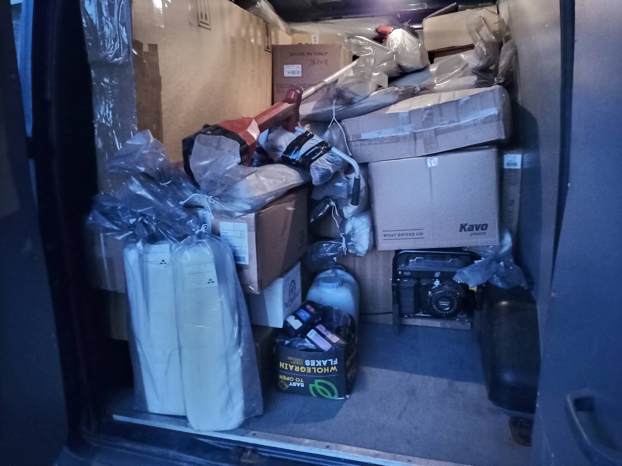 Aega läks,aga ära pakkisin. Ruumi jäi veel 200L kütusevaadile ja homme saabuvatele diiselgerodele ja survepesurile. Ruumi on ka laekuvatele lihakonservidele. Kahjuks jäi suurem ports tulemata,sest ma ajasin kuu sassi kirjas Noh ikka juhtub. Nüüd lühikese etteteatamisega sai jahimeestelt natuke ikka. Ja ega see viimaseks korraks ei jää.