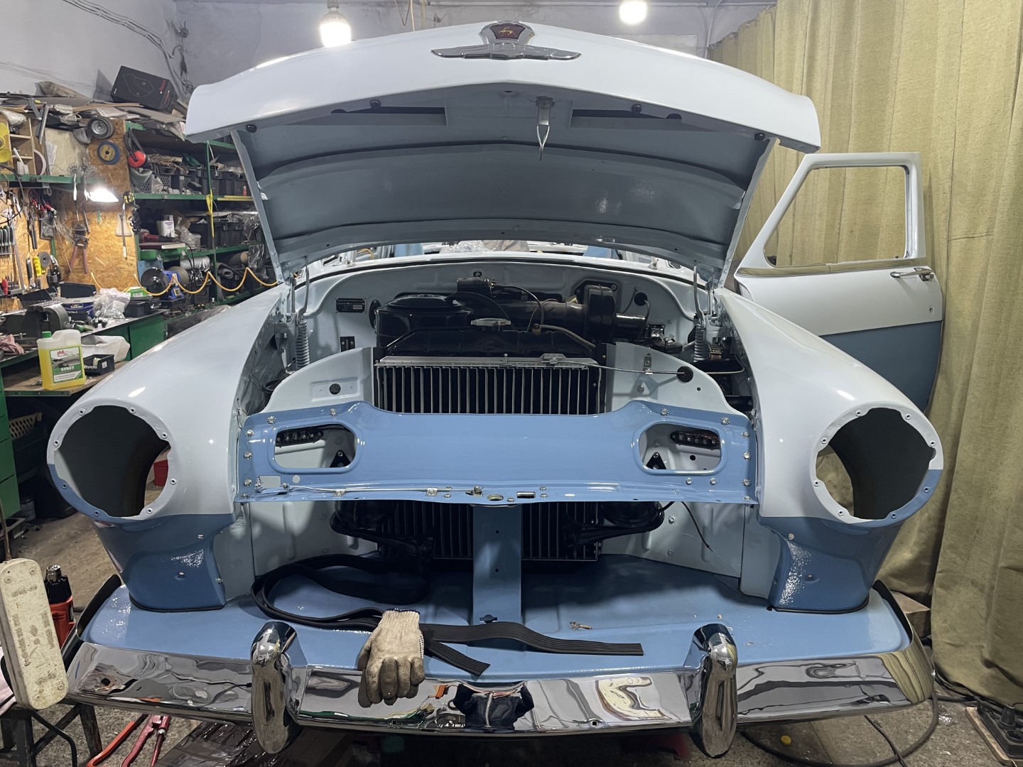 Papid paika pandud ja siis need koos kinnitusvahenditega pealt mustaks värvitud. Hiljem ka mootoriruum värvitud ja seepärast nad ka sealt poolt värvised. Neid suuri mustaks värvitud seibe kasutati ka varasemalt Pobedadel ja peale vanade Volgade ka "uuel" Volgal, mudelinumbriga 24.