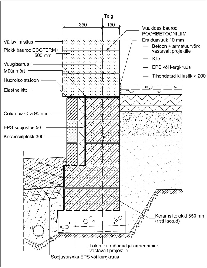 Allpool on hästi näha, kuidas sai alustatud esimest Bauroc plokirida (fibo lint > hüdroisolatsioon > mört > Bauroc). Ning selle nurga alla kuni taldmikuni peaks tulevikus tulema perimeetri EPS plaat. Sobima peab lõikamata.