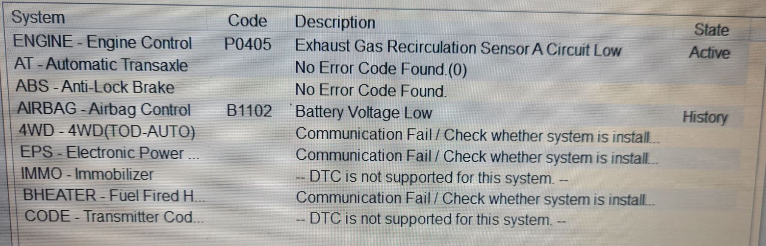 5. Tegin diagnostika ja sain teada, et ainuke viga on P0405 - EGR Sensor A Circuit Low
