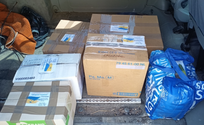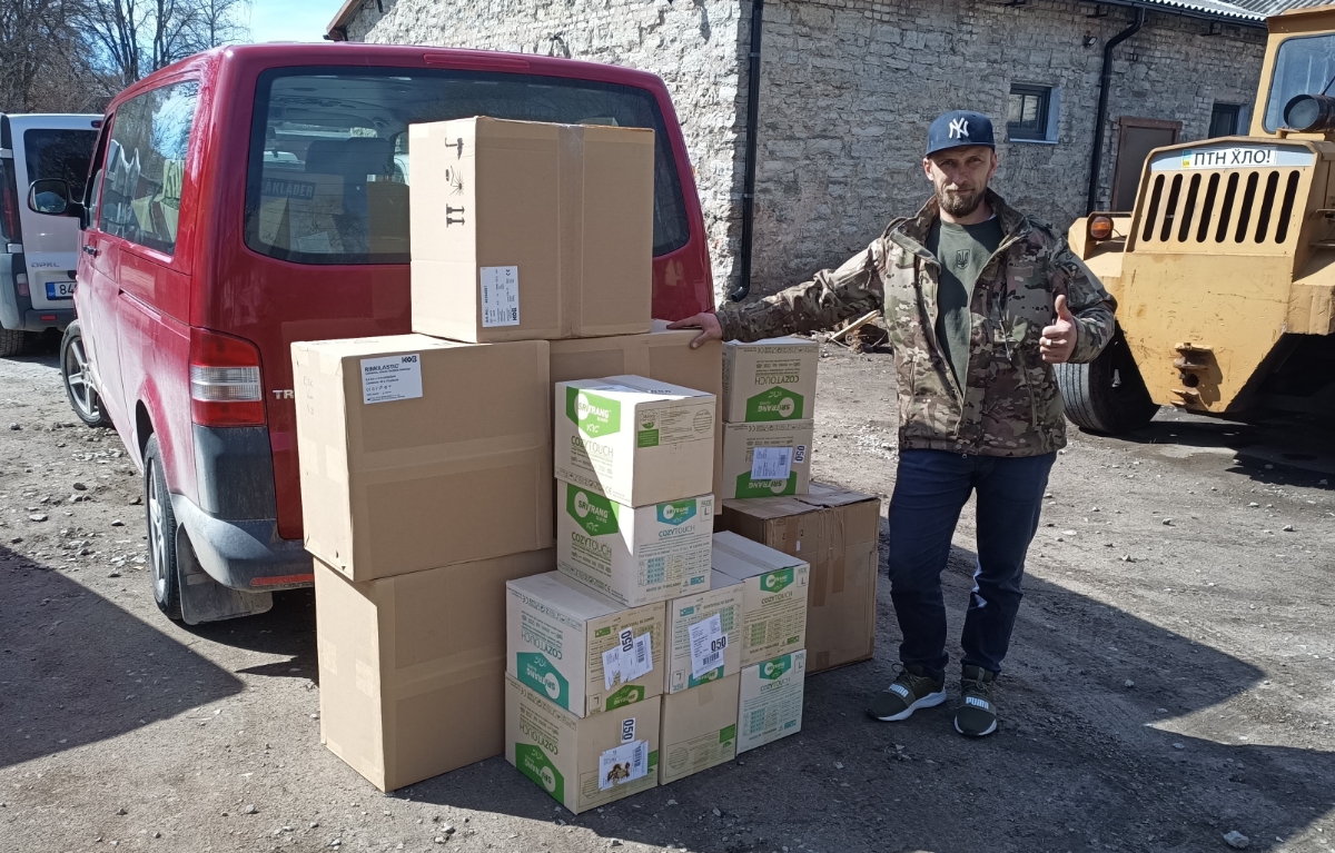 Eile, enne õhtusi remonditalguid läksid teele mõned kastid abi iganädalase kulleriga ning suurem ports asju - kuus kasti sidemeid ja kümme kasti latekskindaid sai üle antud Erko Laidinenile, kes stardib nendega Ukraina suunas esmaspäeval.