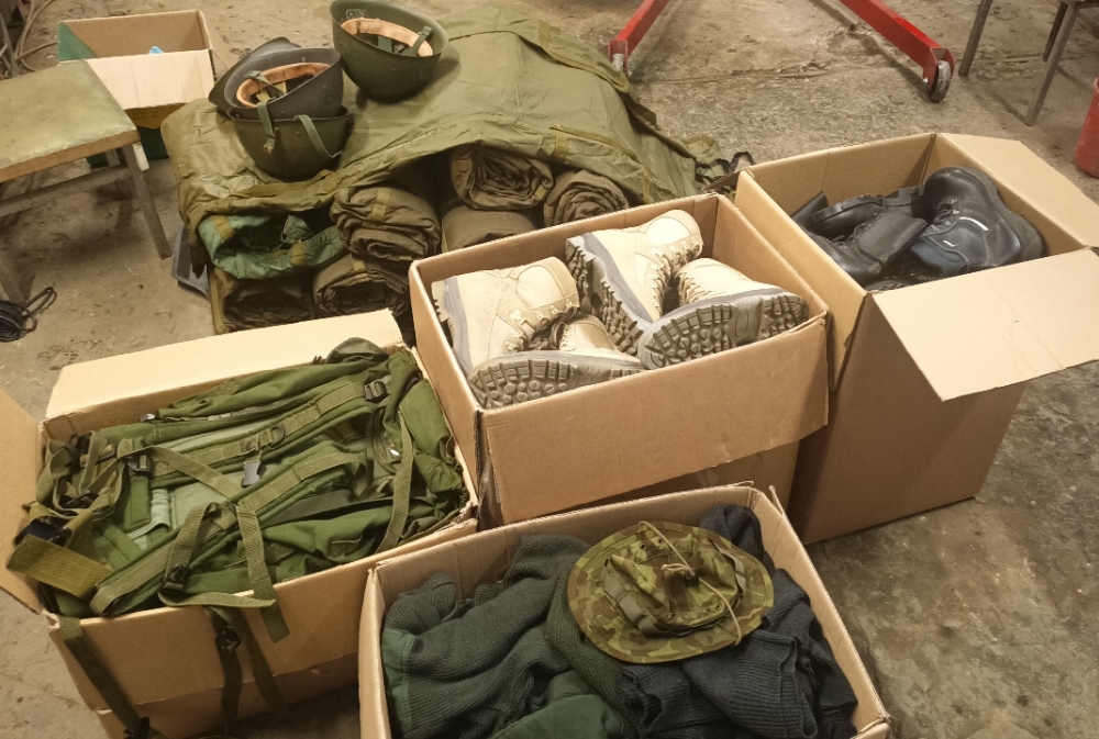 Eile jõudis meie Põhja-Tallinna puhvetisse järgmine abisaadetis kaitseväe/-liidu ülejääkidega. Umbes 30 lebomatt/kanderaami, 25 paari saapaid, paar kasti muid riideid, kotte ja mõned metallkiivrid. Saabastele oleks vaja sisetaldu, kes teab soovitada, kuskohast soodsalt saab, andke märku. Katsun siis saabaste suuruse inventuuri ära teha. Taldade vastu võin pakkuda mälestuseks metallkiivri, kuna neid ei vajata isegi Ukrainas.