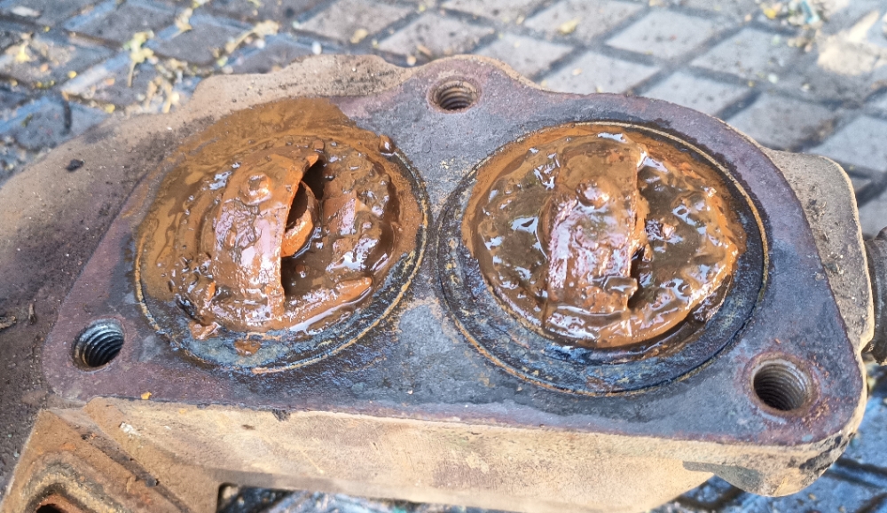 Õhtu lõppes meie õuenarri jahutusprobleemide otsimisega. Kippus teine mõningase tööaja järel jahutusvedelikku radika korgi vahelt välja pressima. Radika tühjenduskraani avades tuli sealt pruunikat vedelikku, mis suruõhuga kaasaaitamisel muutus lausa šokolaadiks. Pole ausaltöeldes nii koledat pilti näinudki varem. Pool tundi lasime veel läbi radika joosta ja siis hakkas vesi juba läbi paistma. Samal ajal mootor oli ikka väga kuum. Jäid sõelale termostaat või veepump. Termostaadid olid sellised nagu pildil näha.