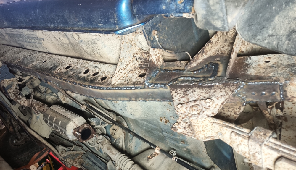 Täna sai Rangeril lõpetatud juhipoolse raamikarbi keevitus (piltidel), kokku kleebitud üks auk plekis, määritud kardaani ristid ning summuti sai alla tagasi. Järgmiseks tuleb teine külg ära parandada ja selleks tuleb paak maha võtta.