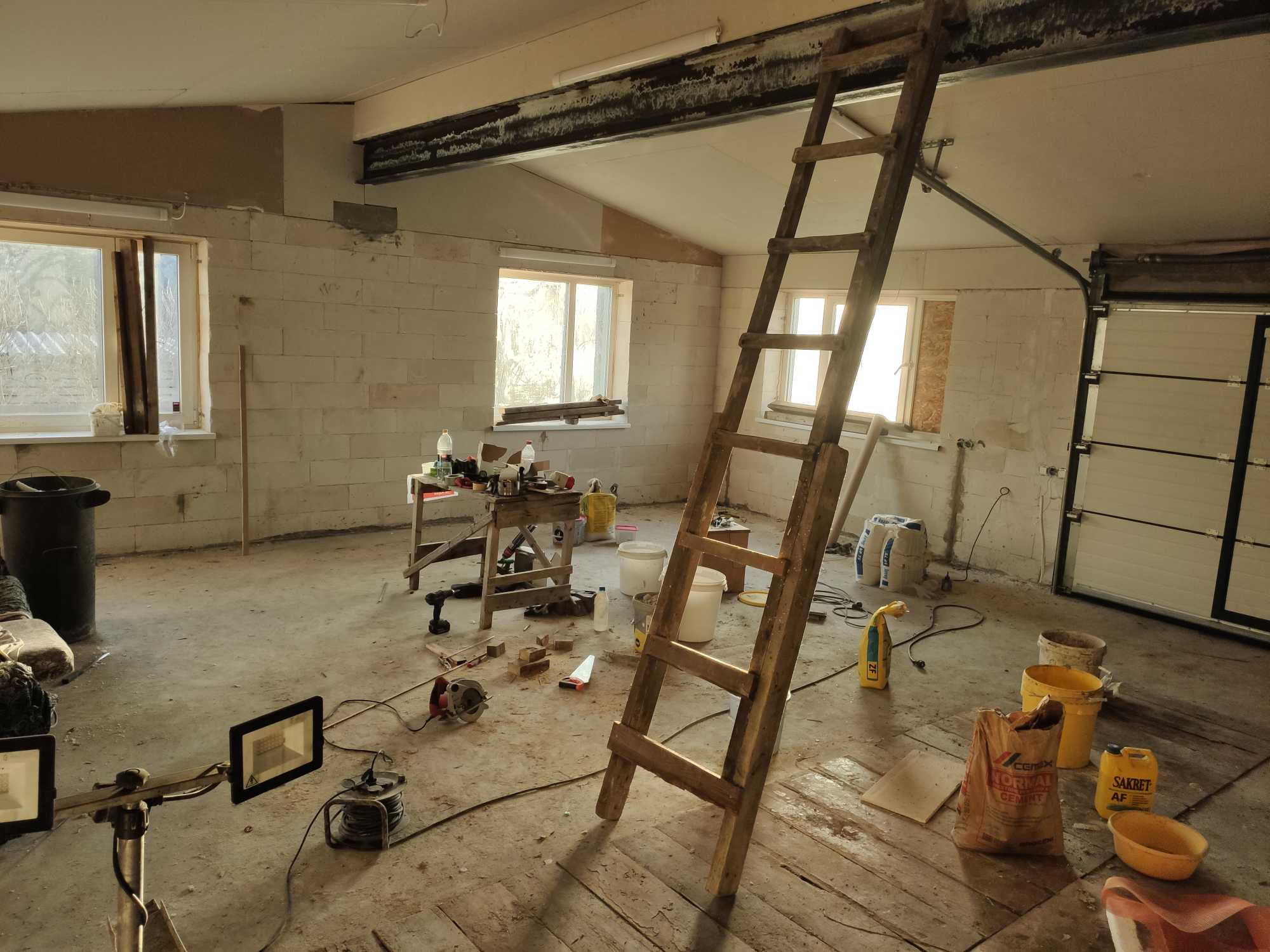 Pisut tülikaks tegi tööd garaažis olevad ehitusmaterjalide ülejäägid ning omad sõiduriistad, mis ikka teinekord katuse alla varjule soovisid saada. Eks neid tuli vastavalt vajadustele ümber tõsta või ruumidest välja viia. No saab hakkama.