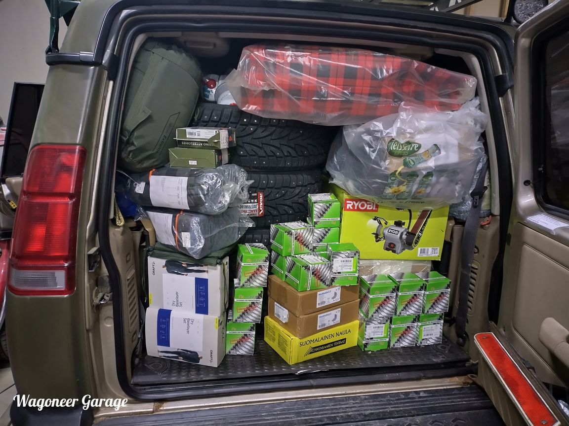 Suured tänud järjekordselt Becky Tööohutuskeskusele soojade rõivaste ja kinnaste/sokkide eest. Samuti tulekustutite ja keepide eest. Koormasse sai soetatud ka uued rehvid Sergo kärule ja lisaks maasturitele jooks A/T ja jooks M/T rehve. Lisaks läks peale jooks pea uusi naelrehve maasturile ja veel üks jooks uusi naelrehve © kaubikule. Lisaks ka jooks kasutatud M/T rehve maasturile. Kahjuks jäi paar jooksu KSF-ide toodud korralikke rehve maha ka,kuna lihtsalt ei julgenud enam peale panna. Kuigi nagu ruumi paistis. Aga lehtvedrud olid sirged ja kummipuksid vastu silda lössis. Transiti kogu kaal oli 4100kg  Sad