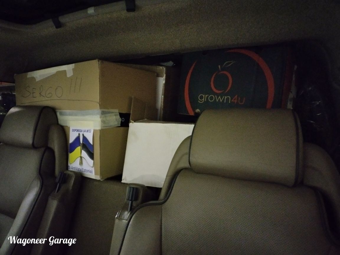 Ksf. Nastiku juhtimisel Ukrainasse toimetatud autodesse mahutasime päris suure hunniku erinevat abi. Nagu ksf. Wagoneer, nii pakkisime meiegi enamuse asju pappkastidest välja, lihtsalt suurtesse prügikottidesse. Järelejäänud pappkastide hunnik oli muljetavaldav, kõik liigsed kilepakendid jäid samuti pakendikonteinerile.
