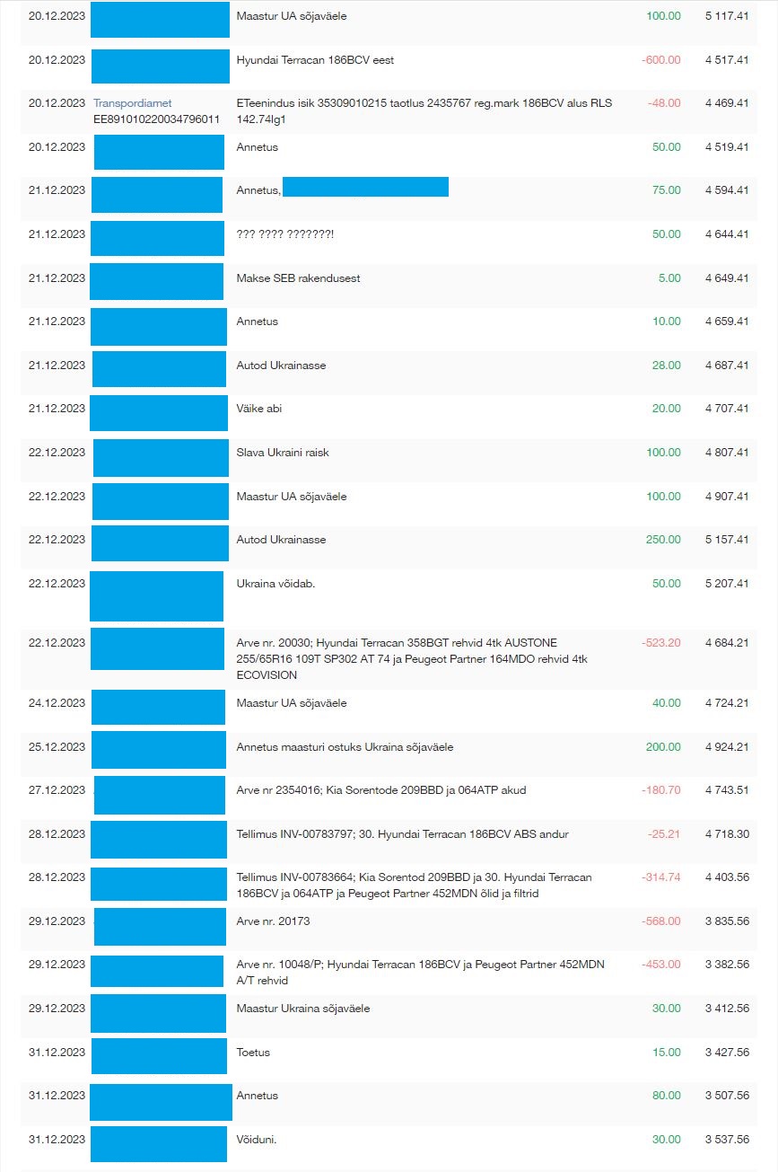 Kulud kokku 33574EUR, millest 22666EUR tuli annetustena MTÜ Toeta Ukrainat konto kaudu ja 10908EUR tuli mujalt: vanarauast 6072EUR, taarast 1143EUR, annetustest isiklikele kontodele 2605EUR (mida aasta alguses paar kuud kasutasime enne MTÜ konto kasutuselevõttu), osta.ee oksjonitelt tuli 162EUR ja ülejäänud katsime omavahenditest.