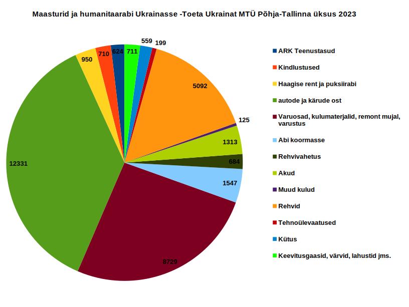Suurim kuluartikkel oli autode ost, millele kulus kokku 2023 aastal 12331EUR (sisaldab veel saatmata autosid ja doonoreid), sellest järgmine suurim kuluartikkel oli varuosad ja tööd teistes töökodades - 8729EUR.