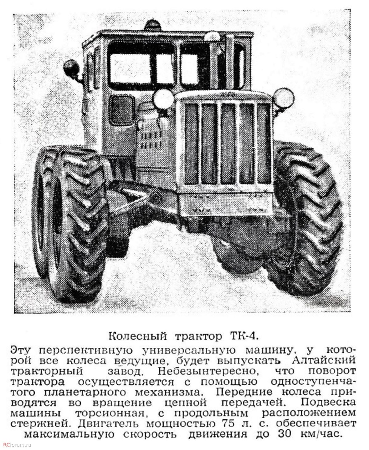 Üks haruldane Venemaa ratastraktor TK-4 aastast 1959 mis loodi Altai traktoritehases toodetavate roomiktraktorite baasil , kuid masstootmisse ei läinud.