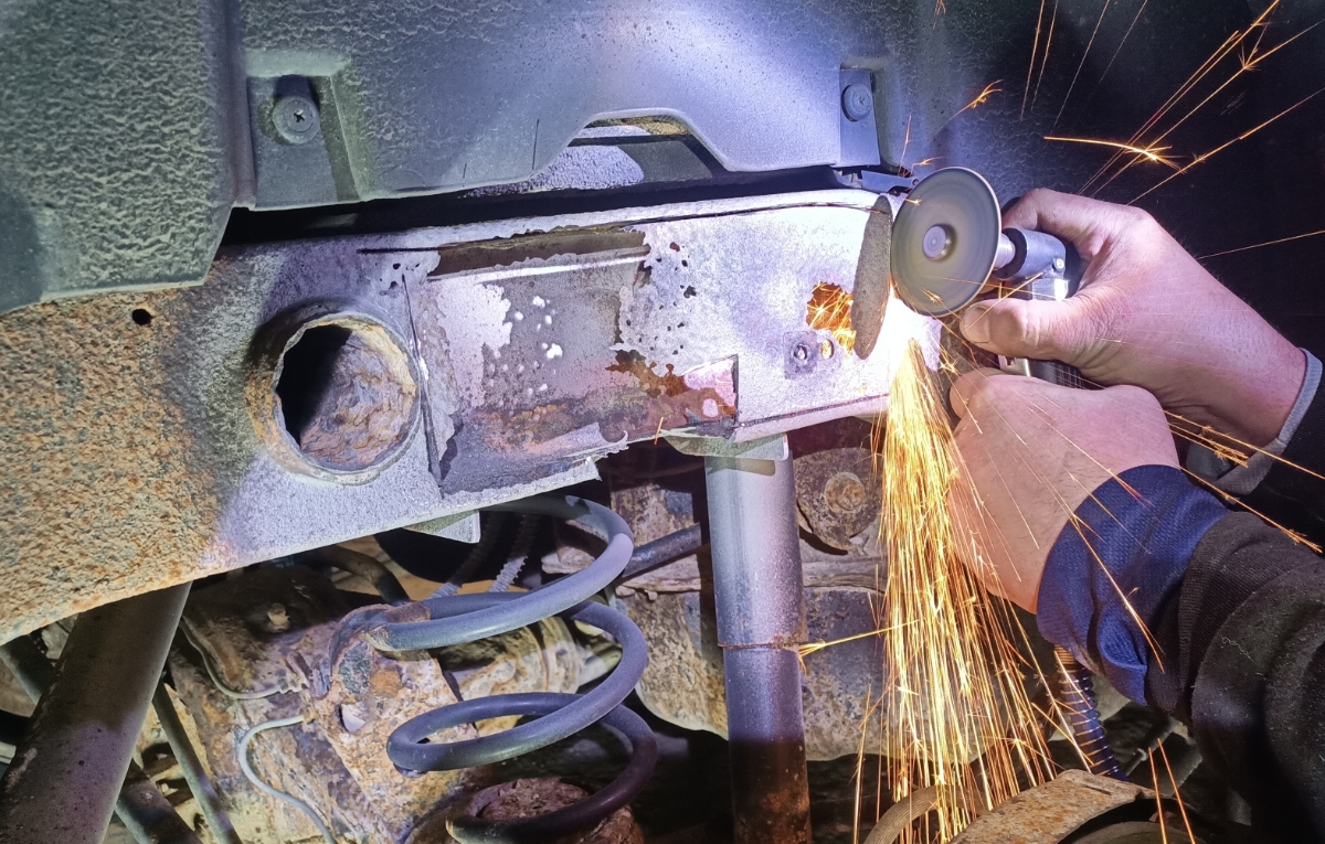 Seega raam. Noh olid augud siin ja seal. Tagasilla juures lõikasin kogu välimise külje ära ning teen uue külje. Seda põhjusel,et tagaosa ja kogu auto läheb natuke ka raskemaks kui ta tavaliselt on. Raami eesmisel osal piirdusin mädamate kohtade välja lõikamisega.