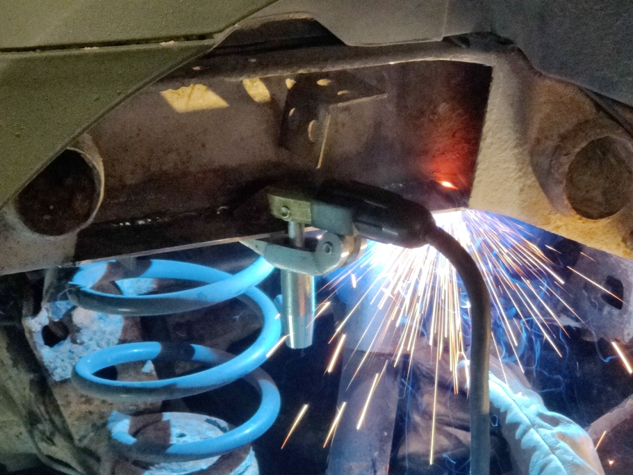Siis järgmine probleem oli selles,et sisemusse oli vaja saada tagakoobaste juurde umbes 110mm lisaruumi. Egas midagi. Värsked mudakad alla ja sai ära mõõta,et palju kannatab koopast seest maha võtta. Ruumi jätsin ka arvestusega,et auto kõõlub ühe rattaga kusagil kännuotsas ja sild siis vildakil. No sain ligikaudse tulemi koos tambovi koefitsendiga,et turvaliselt 60mm saab maha võtta mõlemalt poolt. Ja nii ta siis läks. Nüüd peab kogu selle hunniku auke jälle kinni keevitama.