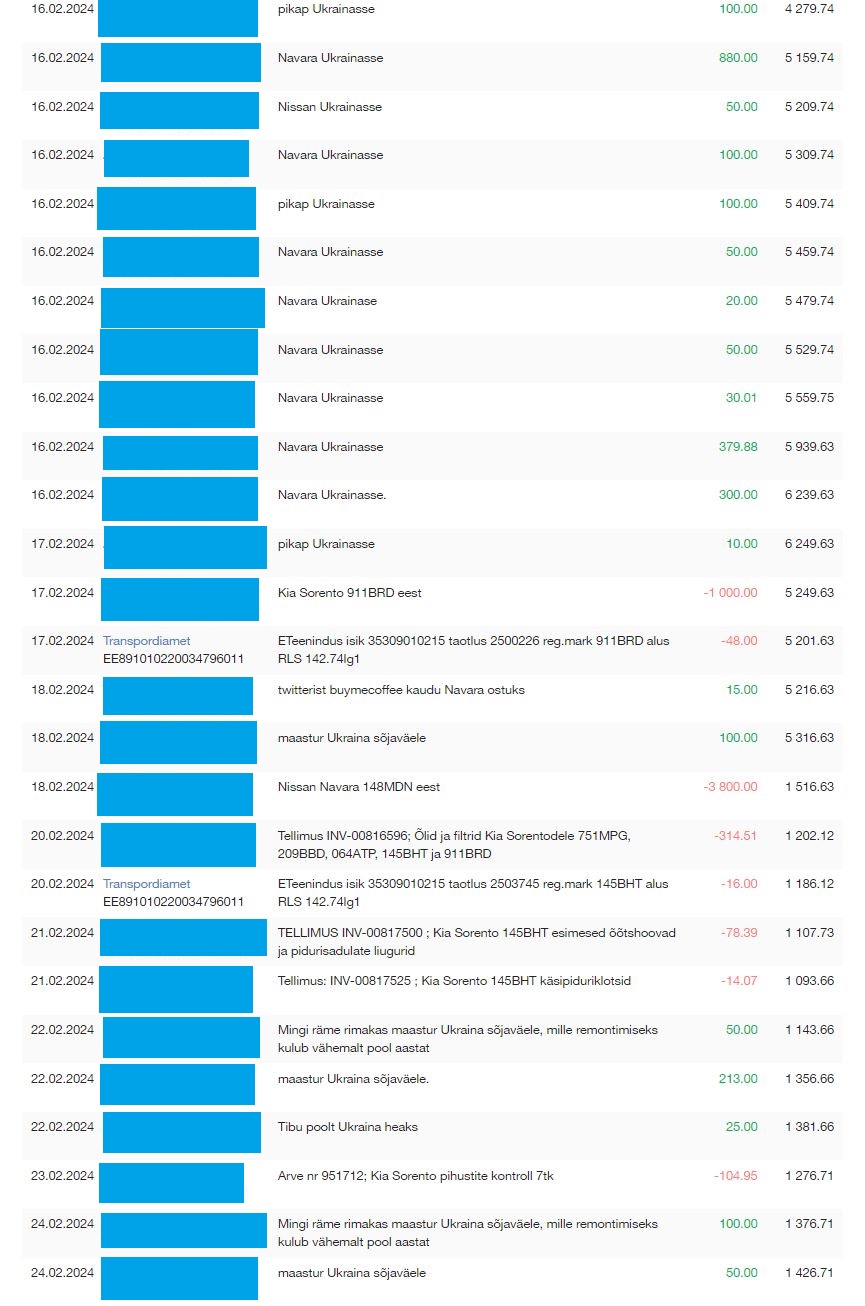 Maasturite hankimist Ukraina kaitseväele ja nende remonti meie Põhja-Tallinna töökojas saad toetada läbi Toeta Ukrainat MTÜ a/a EE387700771008885941. Selgitusse maastur Ukraina kaitseväele.