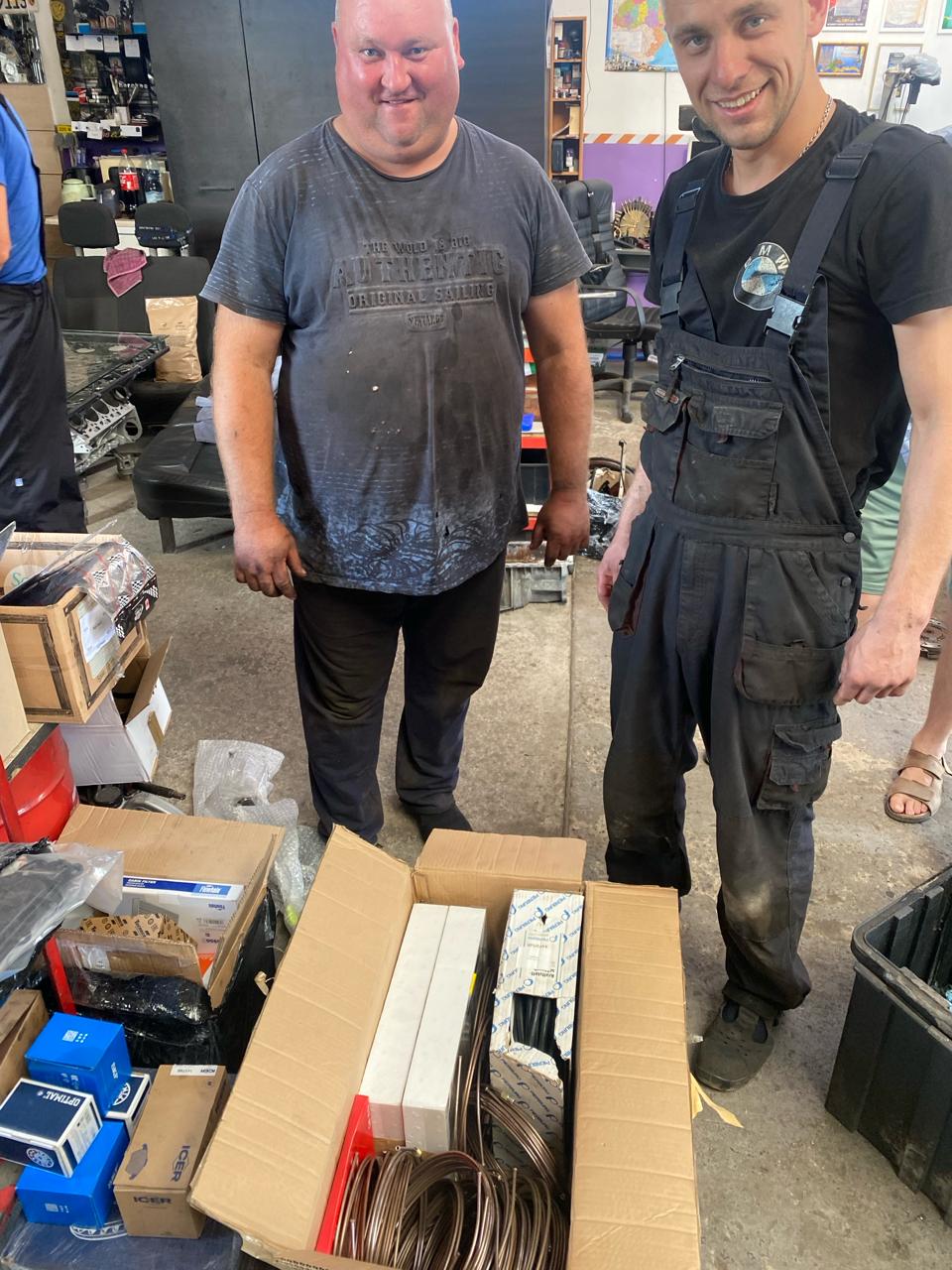 Paar pilti viimase abipaki kättesaamisest Ukrainas. Mõni nädal tagasi panime kokku remontkomplekti meile annetatud asjalikest abivahenditest nagu piduritorud, kütusevoolik, auto prozhektorid jms. Pakk toimetati Ukraina ja siis jäi see kohaliku abiorganisatsiooni seisma mõneks ajaks, ilmselt lihtsalt unustati. Võibolla oli asi ka eestikeelses ladina tähtedega kirjutatud pühenduses. Järelepärimise peale kaevati see igatahes välja ning anti üle. Mehaanikud igati rõõmsad.