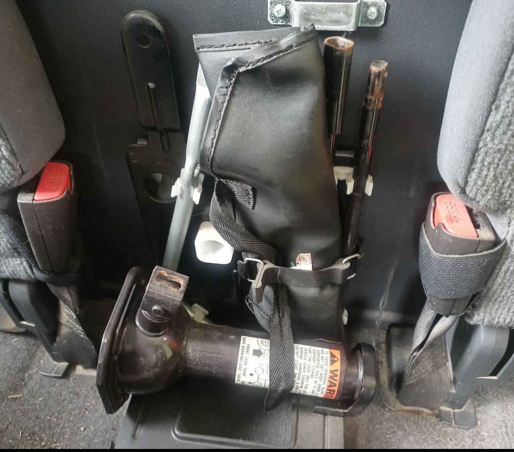Minu omal on jah seal     selline komplekt     , mul pika kastiga ja taga nn koerapingiga. Raamatu järgi on pika kabiiniga variandil juhipoolse tagaistme all.      . Varraste 4-ossaline lego koos keeramiseks veljevõtmega
