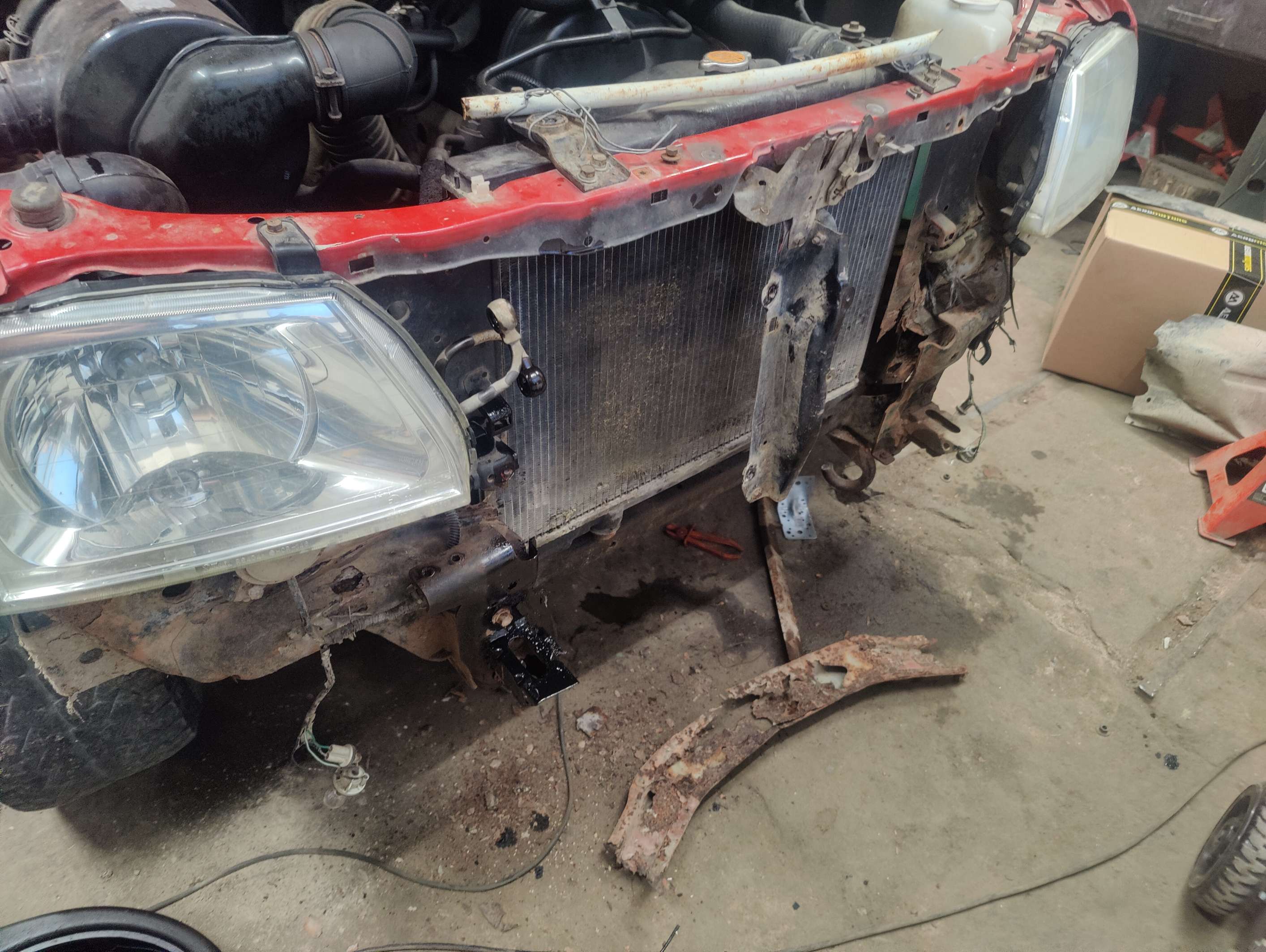 Viimastel päevadel olen eemaldanud lisatuled (pekkis) ja laibaraua (müüa!) ning hakkanud roostest puretud osakondi paikama.