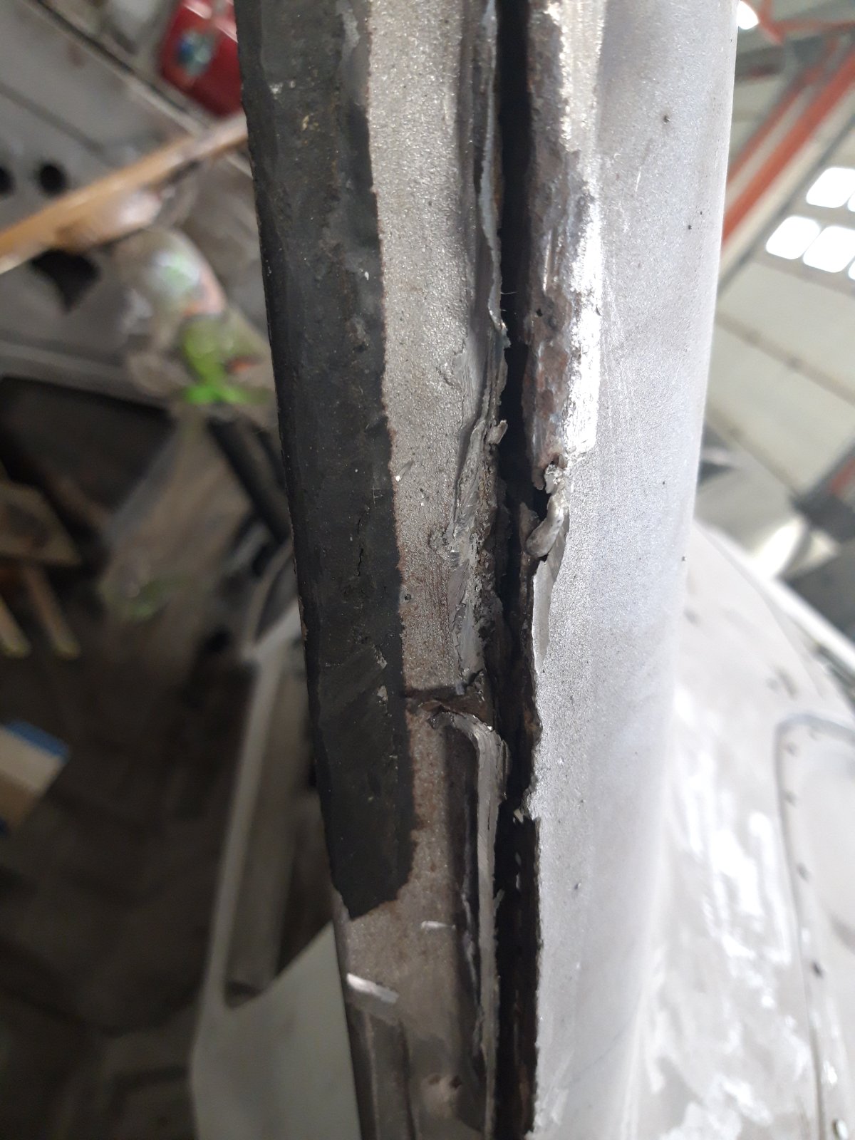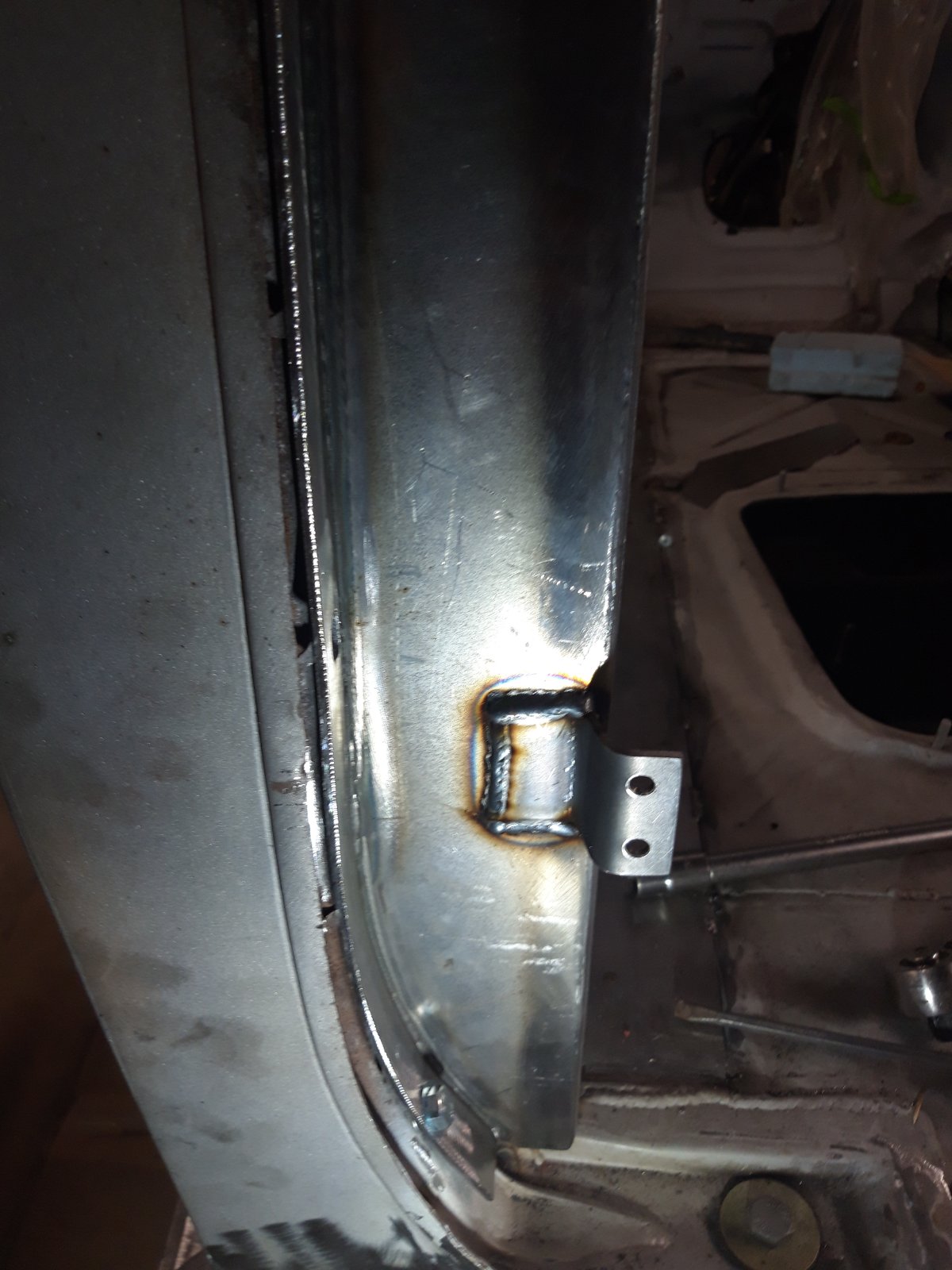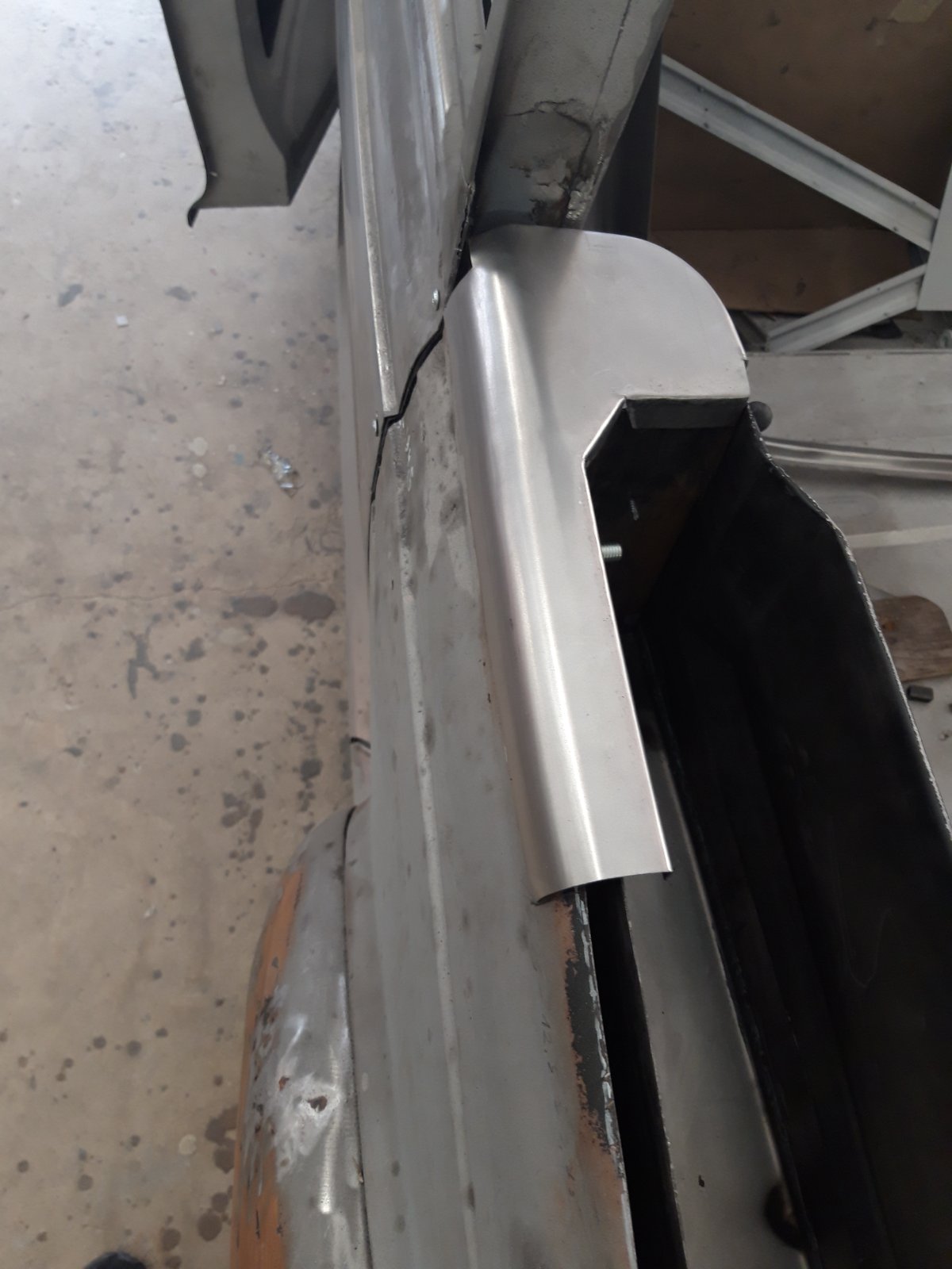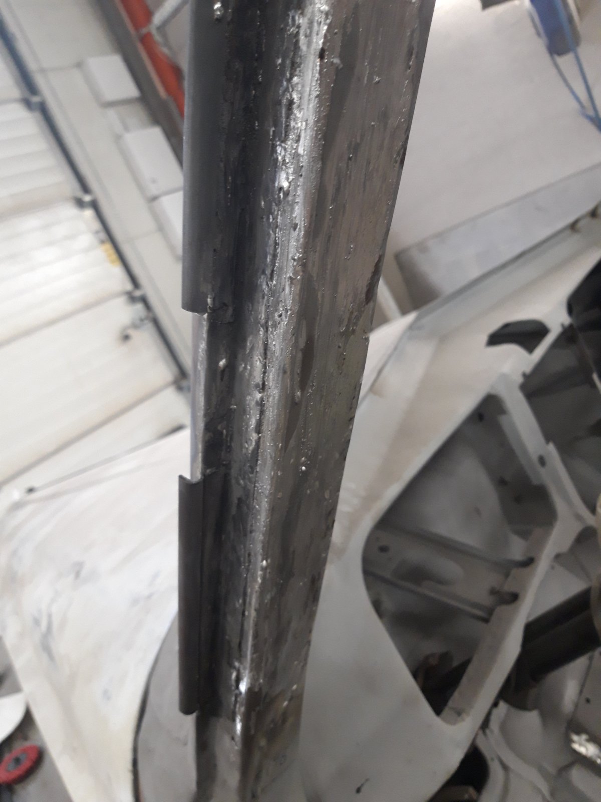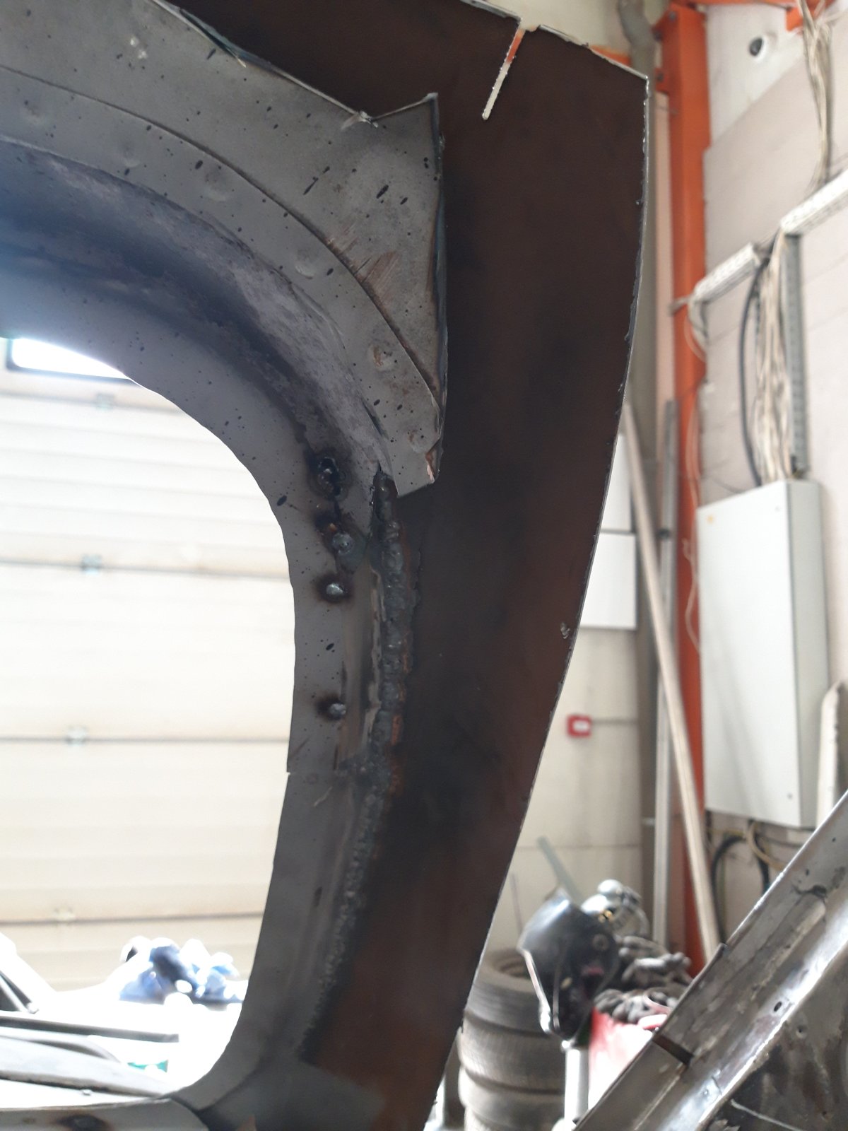 Parempoolse esimese ukseposti alumine osa. Protsess oli sama, mis vasakpoolse esipiilari puhul: vana plekk maha ja uus peale.