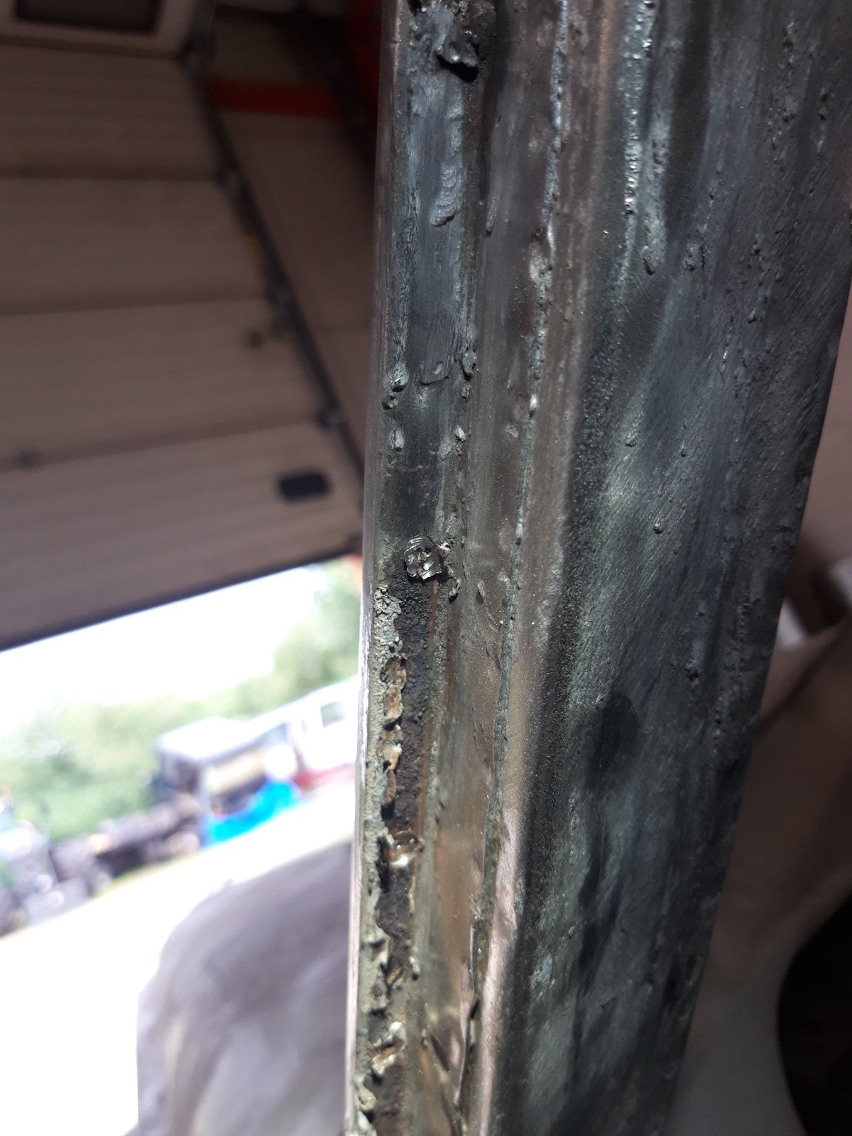 Siin on näha uue ukseposti tegemist, uus tuleb panna otse vana posti peale ja hiljem kõik kokku keevitada.