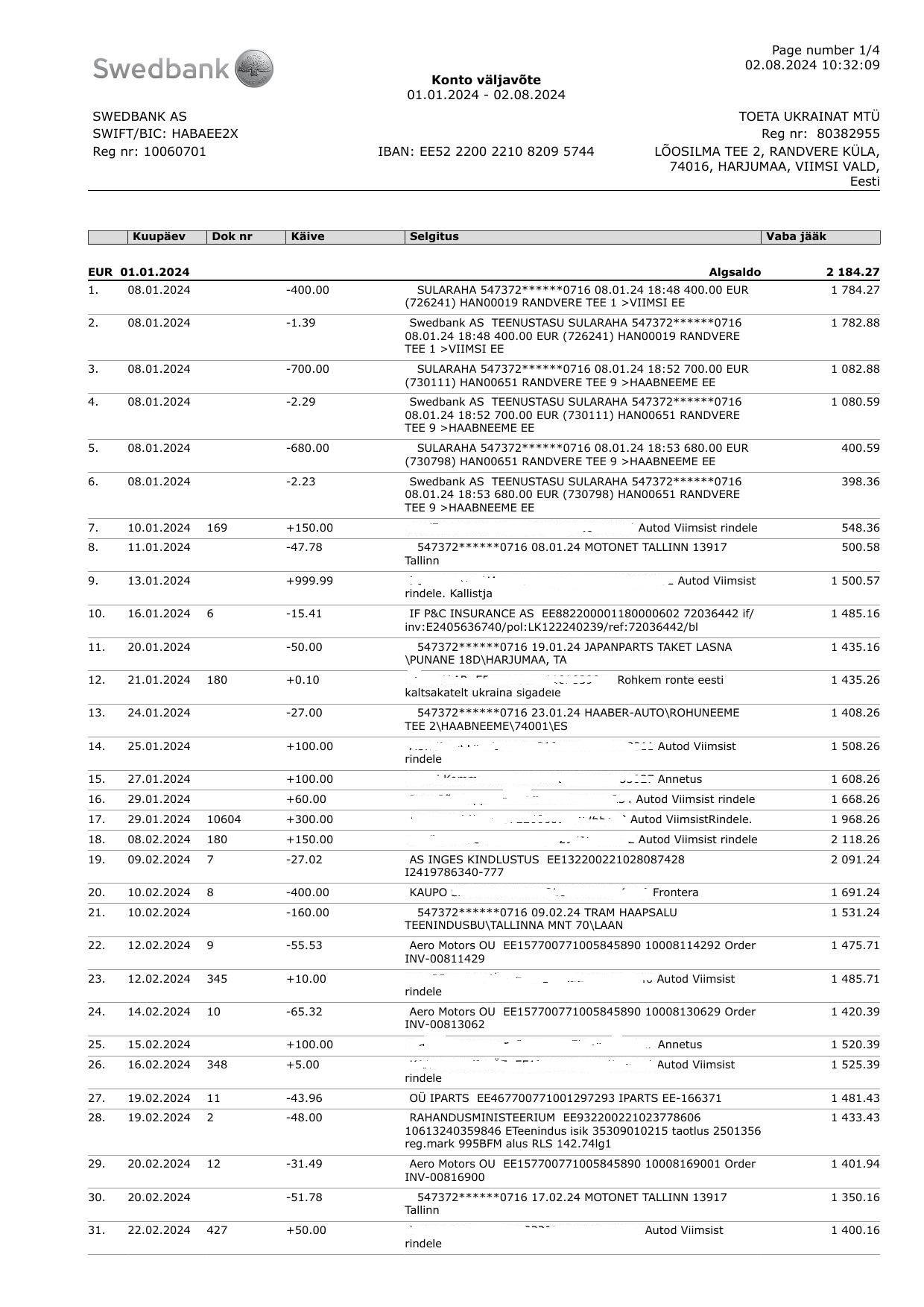 01.05.2024 seisuga siis tuli isiklike rahaliste kulutuste suhe iga annetatud euro kohta 1.68 eurot lisaks. See on siis enda ja firma ja õnneks ühe tuttava panus. Teadsin,et on kulunud parasjagu,aga see võttis ennast ka kokutama natuke. Aga mis teha. Kui on vaja osta,siis tuleb osta. Samas ära jagades selle aja peale ei tulegi väga suur number kuu kohta