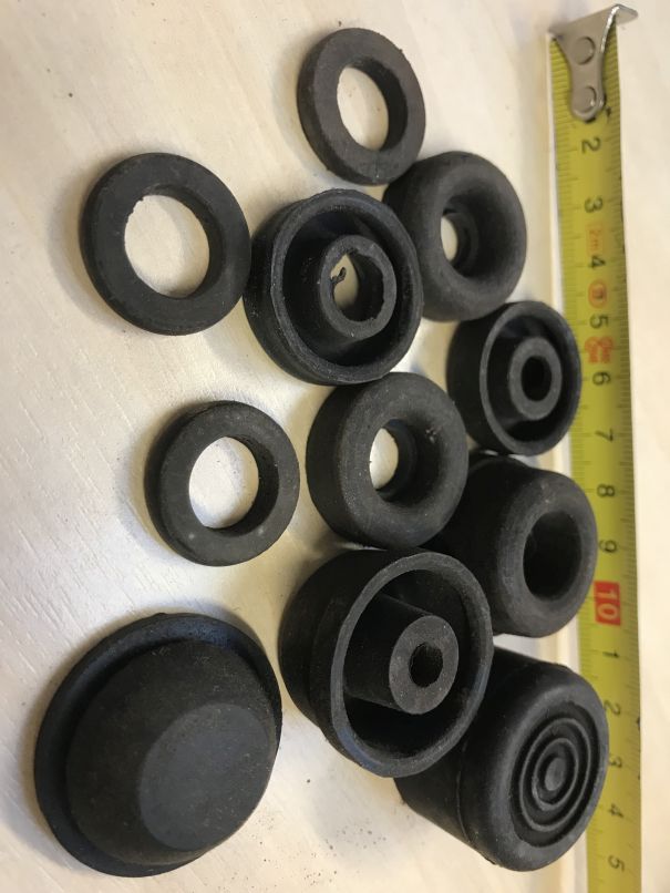 Nõukaaegsed piduri/siduri ja mingid muud kummiosad. Mansetid näivad VAZ-i omad. Muud ise ära ei tunne. Kumm tundub kummi moodi...