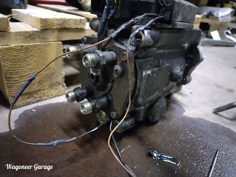 Siis sai tuppa lohistatud Das Lehmake mis lihtsalt ära suri. Doonorilt kruttisin maha KSP ja sealt sain kätte ka KSP aju. Tundus lihtne. Aga Lehmakesel ei tahtnud ma KSP-d maha võtta. Aju saab ka auto peal ära vahetada. Siis aga teatas tegelane Inglismaa Fronteera klubist,et aju kärssamise põhjus on ära mädanenud juhtmete isolatsioon ja uus aju kärssaks samuti maha. Loomulikult on üks solenoid pumba tagaosas ja täitsa alumises servas. Ja juhtmed on veetud pumba mootori poolselt küljelt tagaplaadi kinnituspoltide alt. Ehk teisisõnu nende vahetamiseks peab kaks mootori poolset plaadi kinnituspolti lahti keerama.Peeglist on näha alumise poldi asukoht. Siinkohal tuleb pikk piiiiiks ja hägustus,aga tehtud ta sai ning käima ta läks. Nüüd jääb veel lahendada probleem miks auto aju ja pumba aju päris hästi suhelda ei taha. Hetkel ei keera mootori soojenedes süüdet hilisemaks ja jääb liiga varaseks. Ning selle tulemusel hakkab mootor puterdama. Samas immo off ajuga töötab normaalselt. Ehk üritame võtta nüüd originaal ajust immo kiibi ja vahetada selle immo off ajus olevaga ära. Seda Inglismaalt laekunud info pärast,et see immo off võib suvalisel ajahetkel minna miljoni asja kokku langemisel lukku.