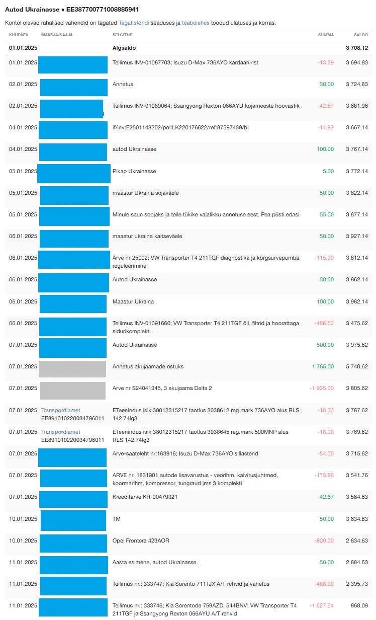 Abistuskontolt on läbi käinud alates konto loomise algusest(05.2023) kuni tänase (02.02.2025) päevani 35899.89 EUR Lisaks on mu isiklikule kontole laekunud 4100.- EUR