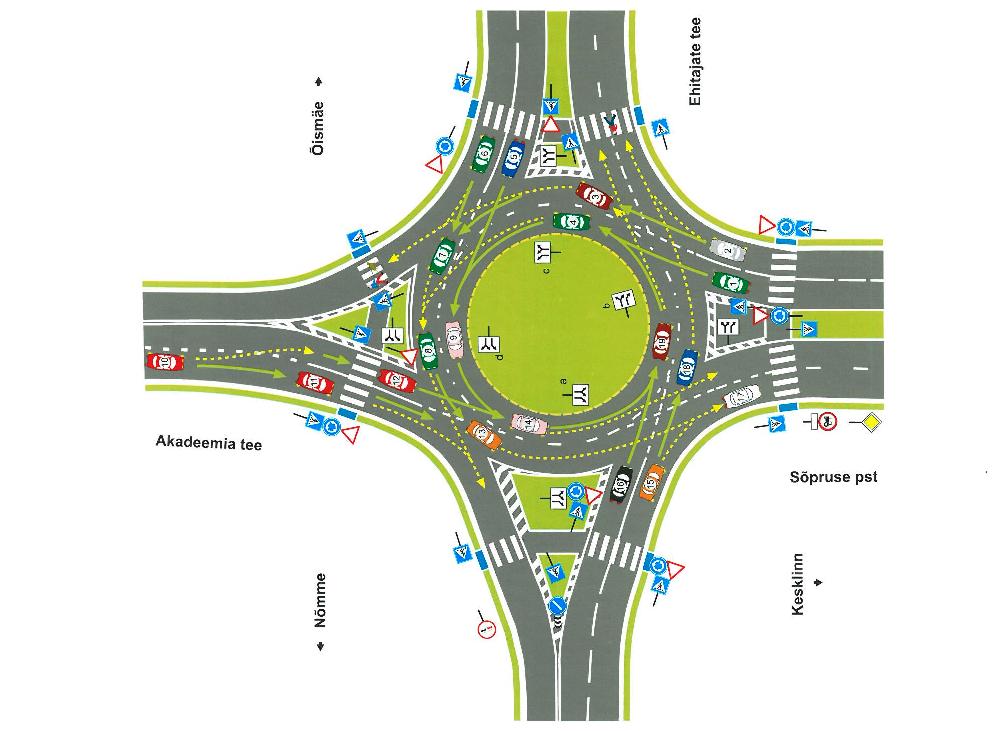 (02-04-2025, 10:58 AM)indreksirk Kirjutas:  teiseks võib juba keegi olla parempoolsel rajal (näiteks Sõpruse pst poolt lähenev ja kiirem juht, kes näeb vaba rada või tagaliikuv ja veidi varem sõidurada vahetav juht) ja kolmandaks võib teiselt poolt Ehitajate teelt paremale Akadeemia teele sõitev juht arvata, et sisemisel rajal olev juht jätkab ringil liikumist, mitte ei sõida Akadeemia teele ja püüab liiklust sujuvamaks teha samaaegse ristmikule sõitmisega.