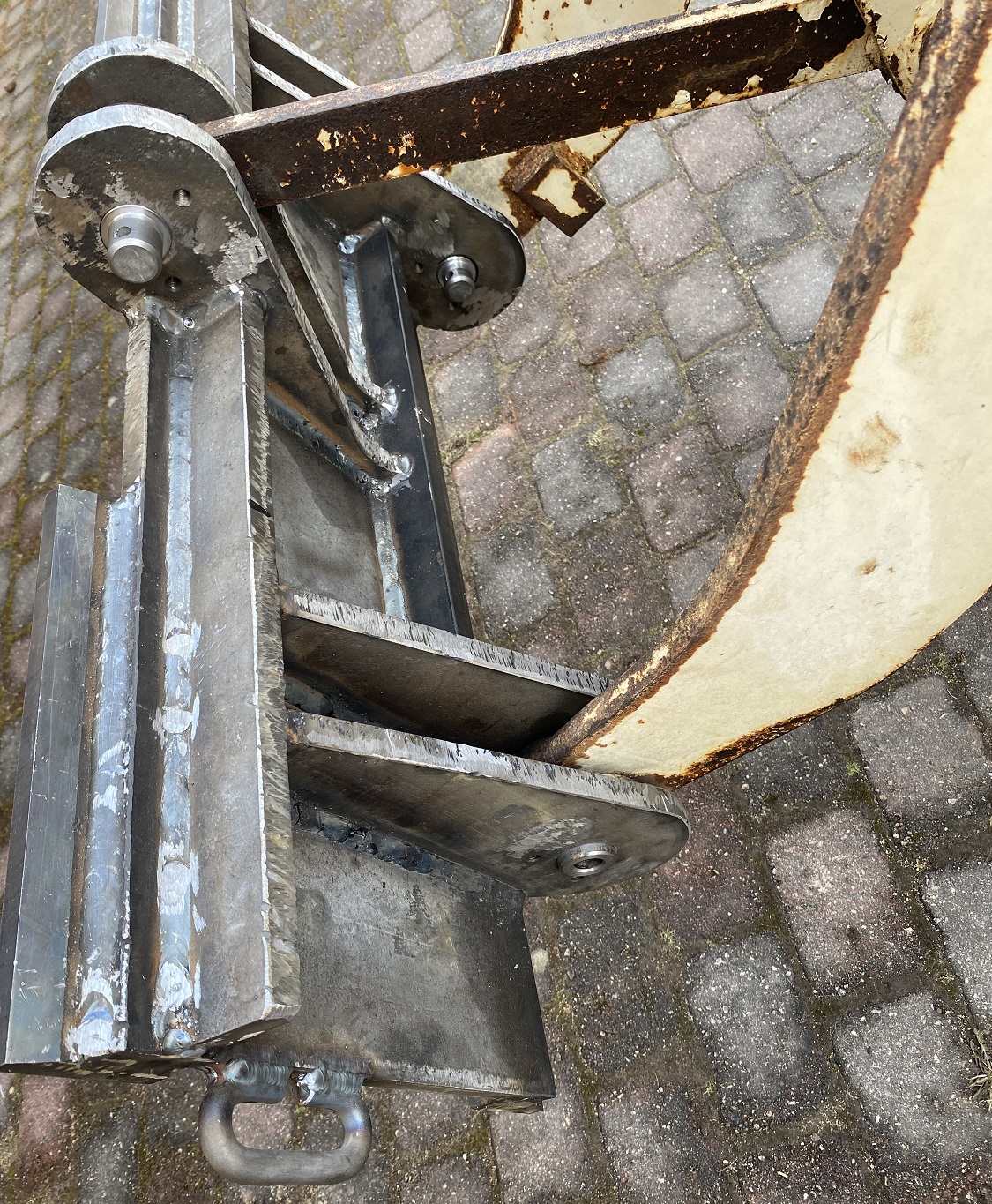 Minu väikelaaduril on max tõste koormus 850kg ja töökoormus 650kg, mis iseenesest on enamuse tööde jaoks piisav. Samas, kui paigaldada eri haakeriistade jaoks nn eurokinnitus, siis läheks jamaks, sest eurokinnitus viib juba ainuüksi haakepunkti 10-15cm ettepoole. Tõstekahvlite kasutamise korral jääb väikese kopale disainitud jõuõla puhul kasulikku tõstevõimet kaunis vähe järgi. Lahenduseks meisterdasin ma FEM 2A standardiga sobituva haakeplaadi, millele tegin natuke pikema jõuõla.