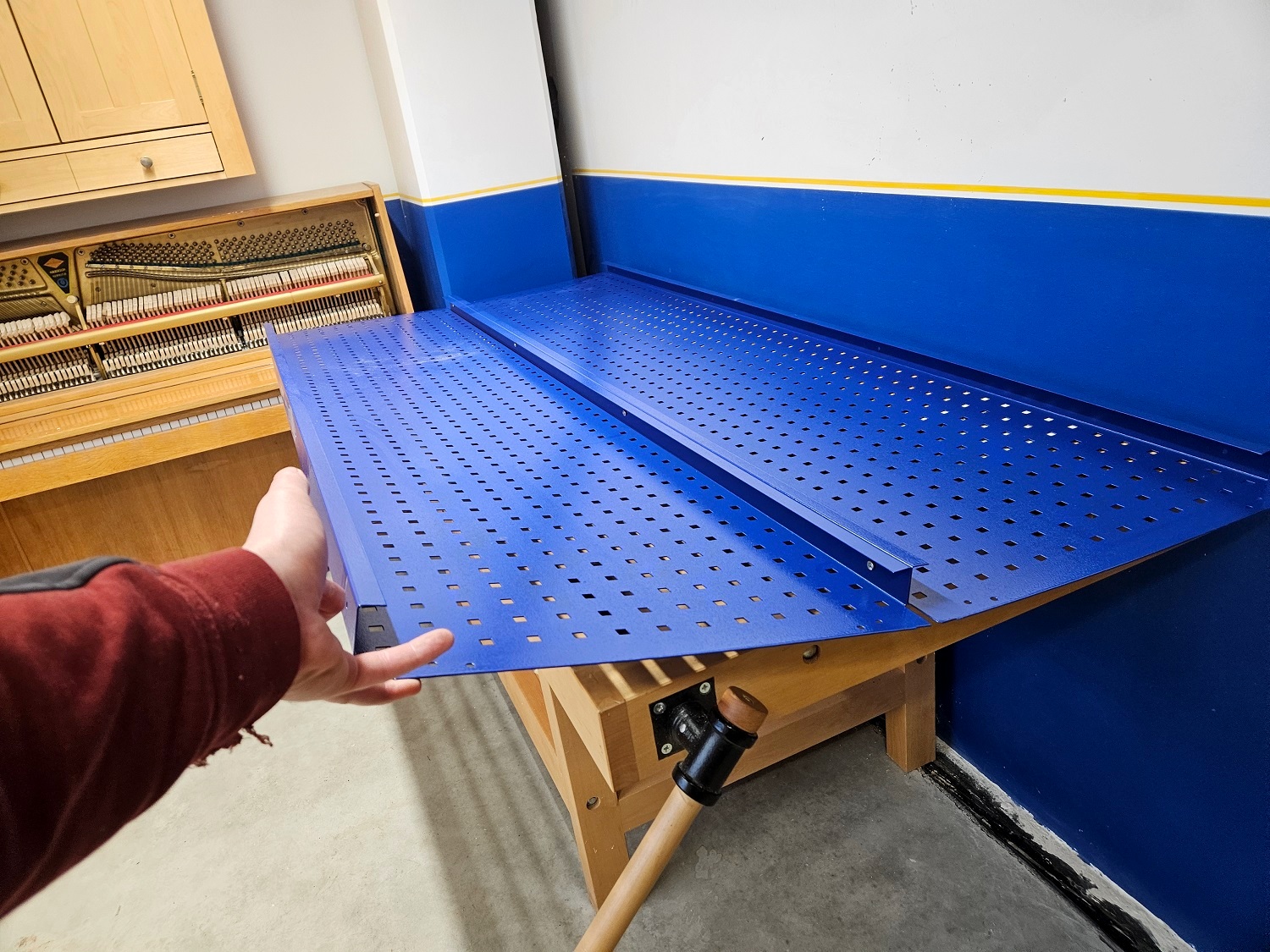 Need paneelid on ilmselt mõeldud kinnitamiseks selleks ette nähtud raamile. Sellised leiab sama tootja tööriistakärudelt ja liugseintega kappidelt. Nii nagu nad mul on, ei ole need piisava jäikusega. Ühtepidi on jäikus olemas, sest küljed on raamiks painutatud, teistpidi aga mitte, sest need on lahtised ja seal on kruviaugud ette nähtud raamidele kinnitamiseks. Käe vahel ei saa neid sellisel kujul isegi mitte tõsta ilma et ära ei lõhuks.