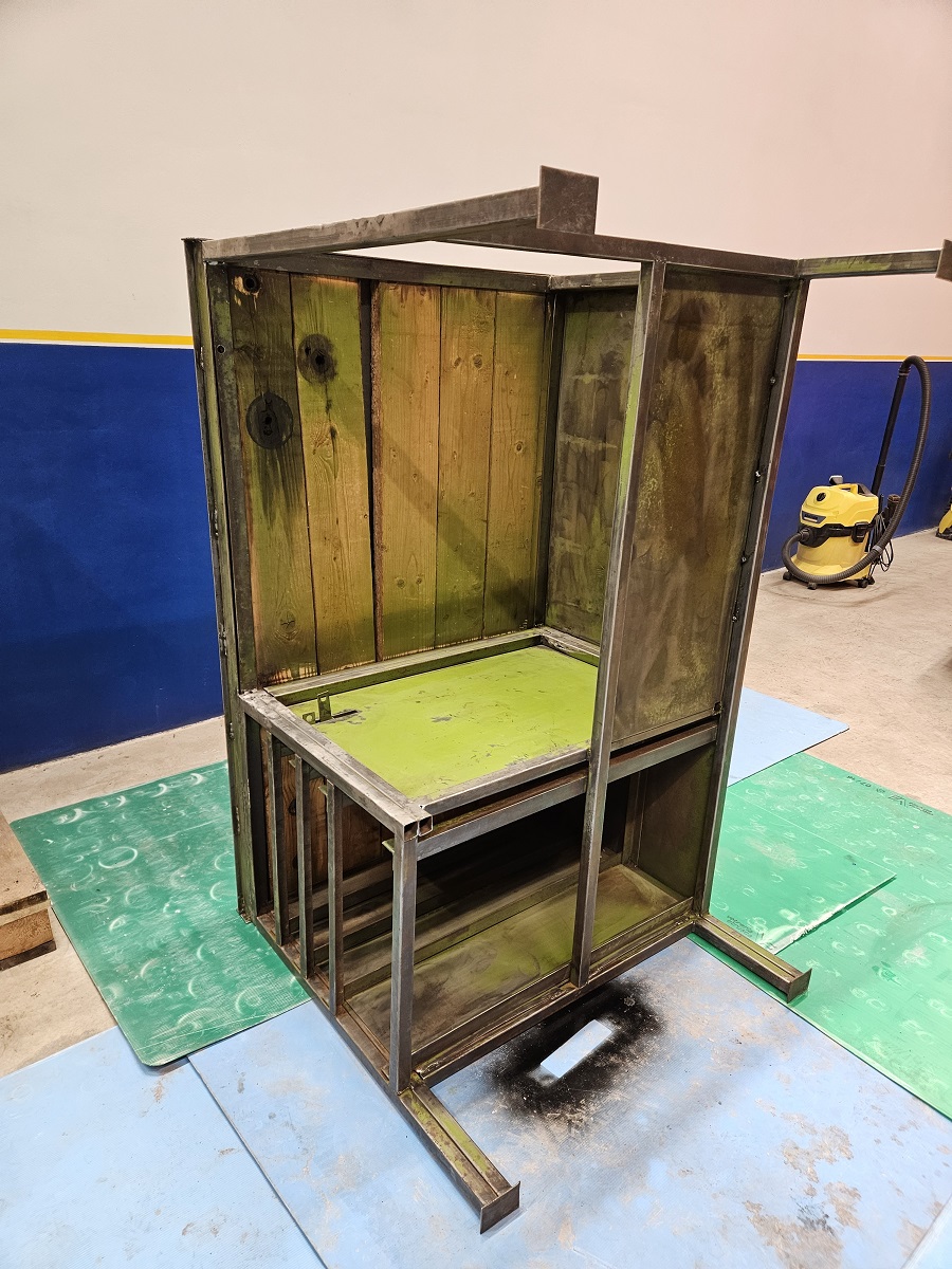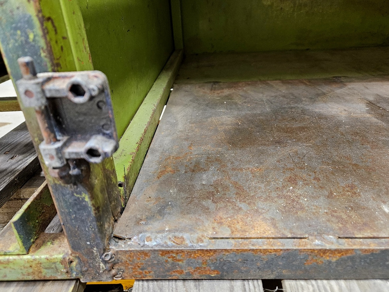 Vaadates kuhu laud tulema peaks, otsustasin selle algse kuju taastada (niipalju kui seda ette suutsin kujutada). Ehk siis eemaldada ühe külje plekid, üle poole lahtise poole põhjast ning sealsed nurkrauast siinid ja välisküljel asuvad uksehinged.