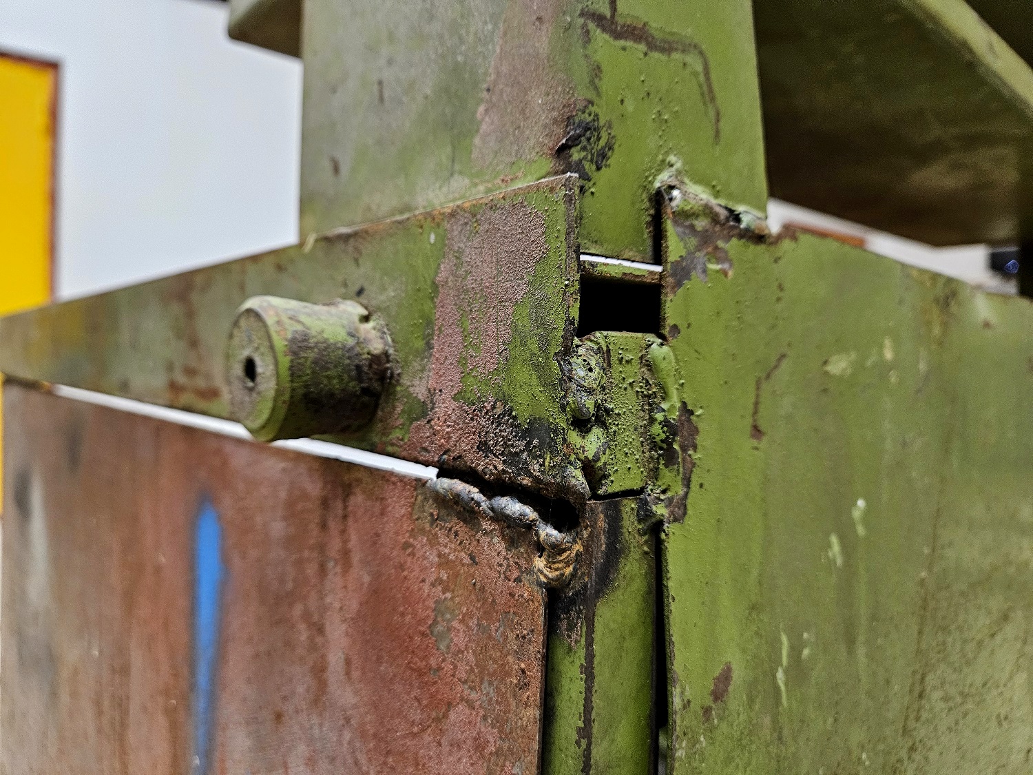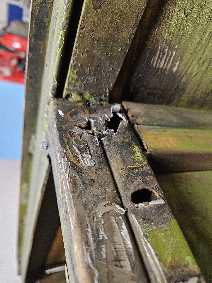 Midagi polnud teha. Sisuliselt kõik vanad keevituskohad said lõpuks sellised, sest üksjagu kohti tuli meisliga lahti lüüa ning paljuski olid varasemalt metall juba elektroodiga auguliseks põletatud. Hingede jaoks olid poldid konstruktsioonist läbi pandud ja siis kinni keevitatud. Seega ka neist jäid mõlemale poole augud, mis tuleb kinni panna.