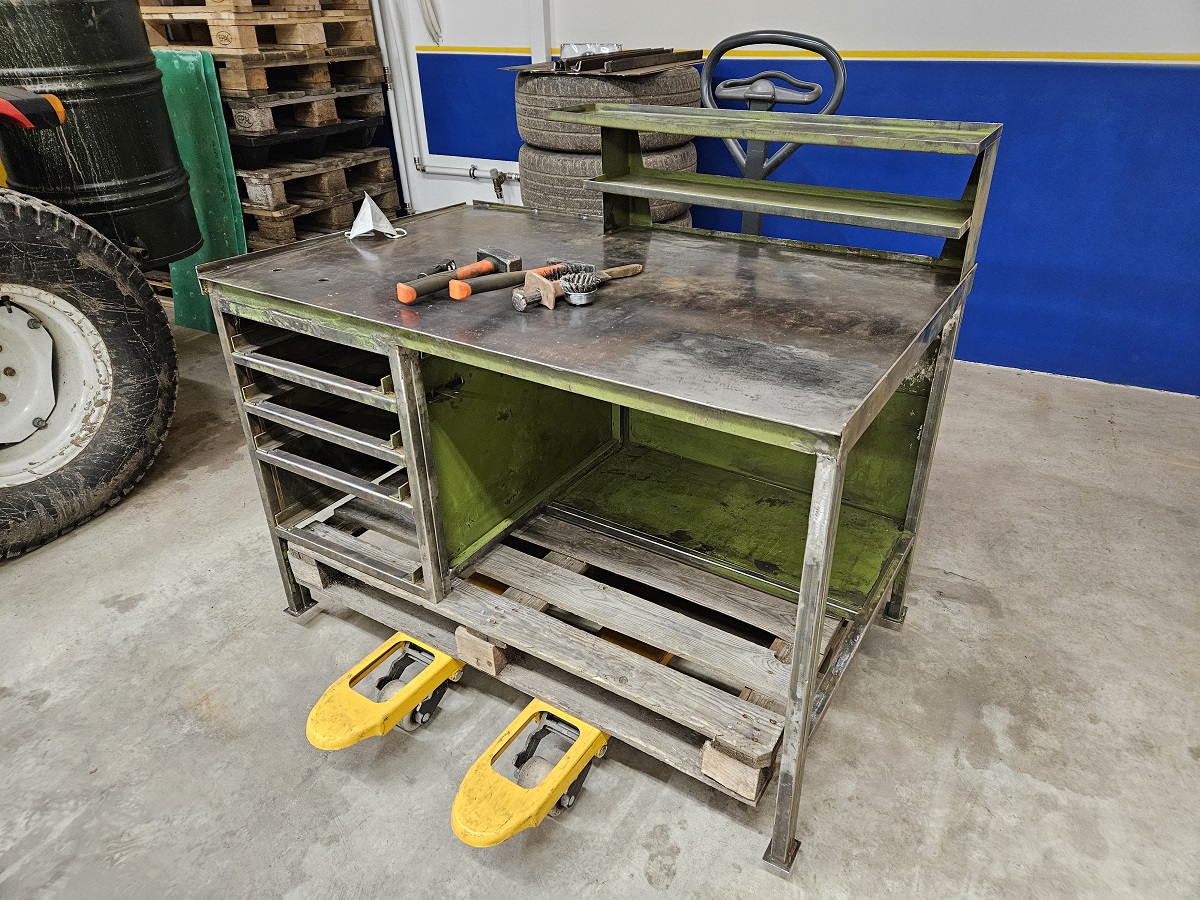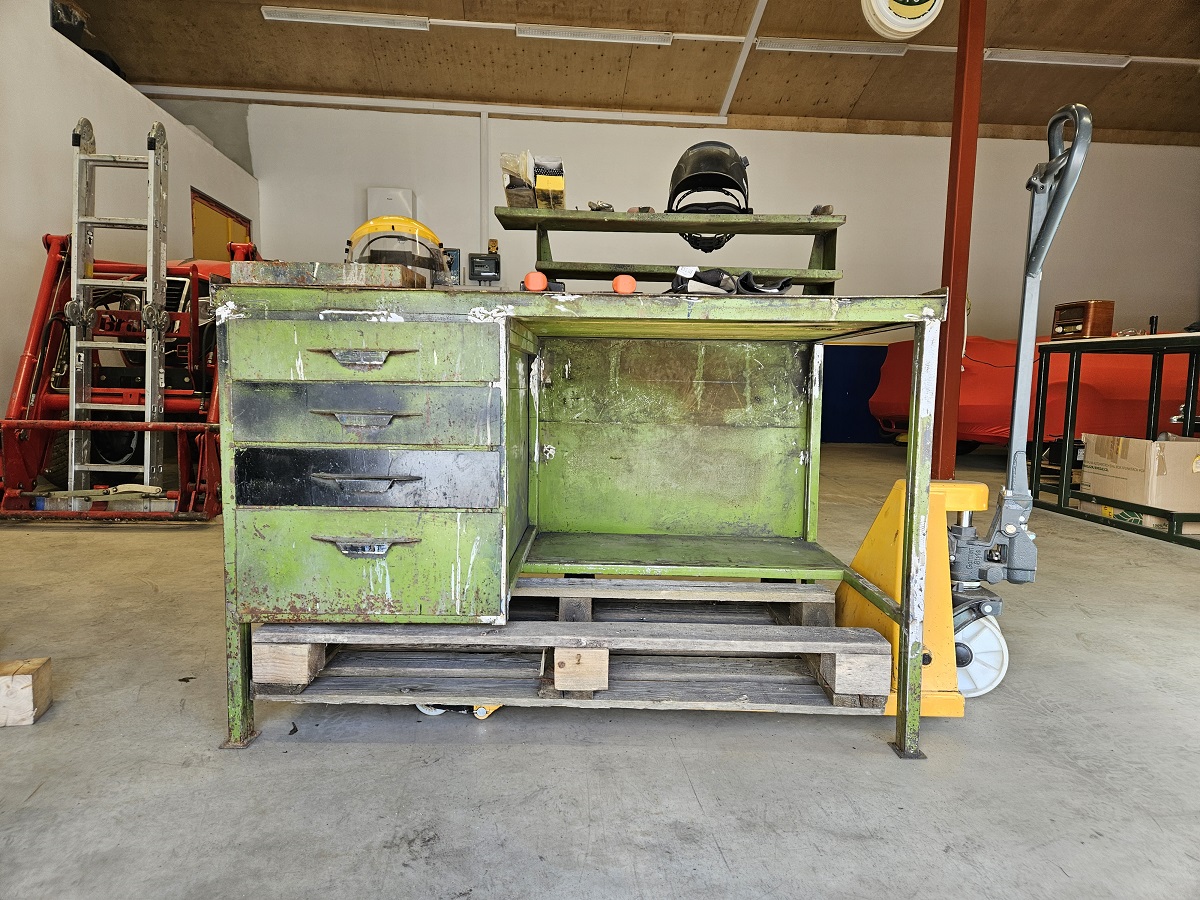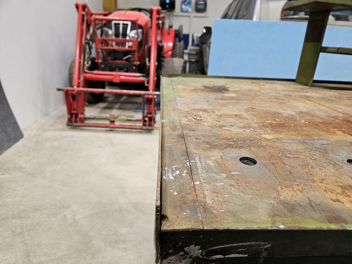 Igatahes pakutud töölaua ma ära tõin. Ülalpool toodud foto on aga juba palju hilisemast ajast. Tegelikult ma algselt vaatasin, et see laud mulle garaaži ei passi. Hoone oli tühi ja ei osanud nagu kuhugi planeerida. Seega kui laud sai ära toodud augustis 2023, siis kõigepealt läks see õue puukuuri räästa alla järgmist aastat ootama. Juunis 2024 tõstsin laua räästa alt merekonteinerisse silma alt ära ning augusti lõpus 2024 aastal (kui on ka ülalolev foto tehtud), tõstsin laua esmakordselt välja põhjalikumaks ülevaatuseks.
