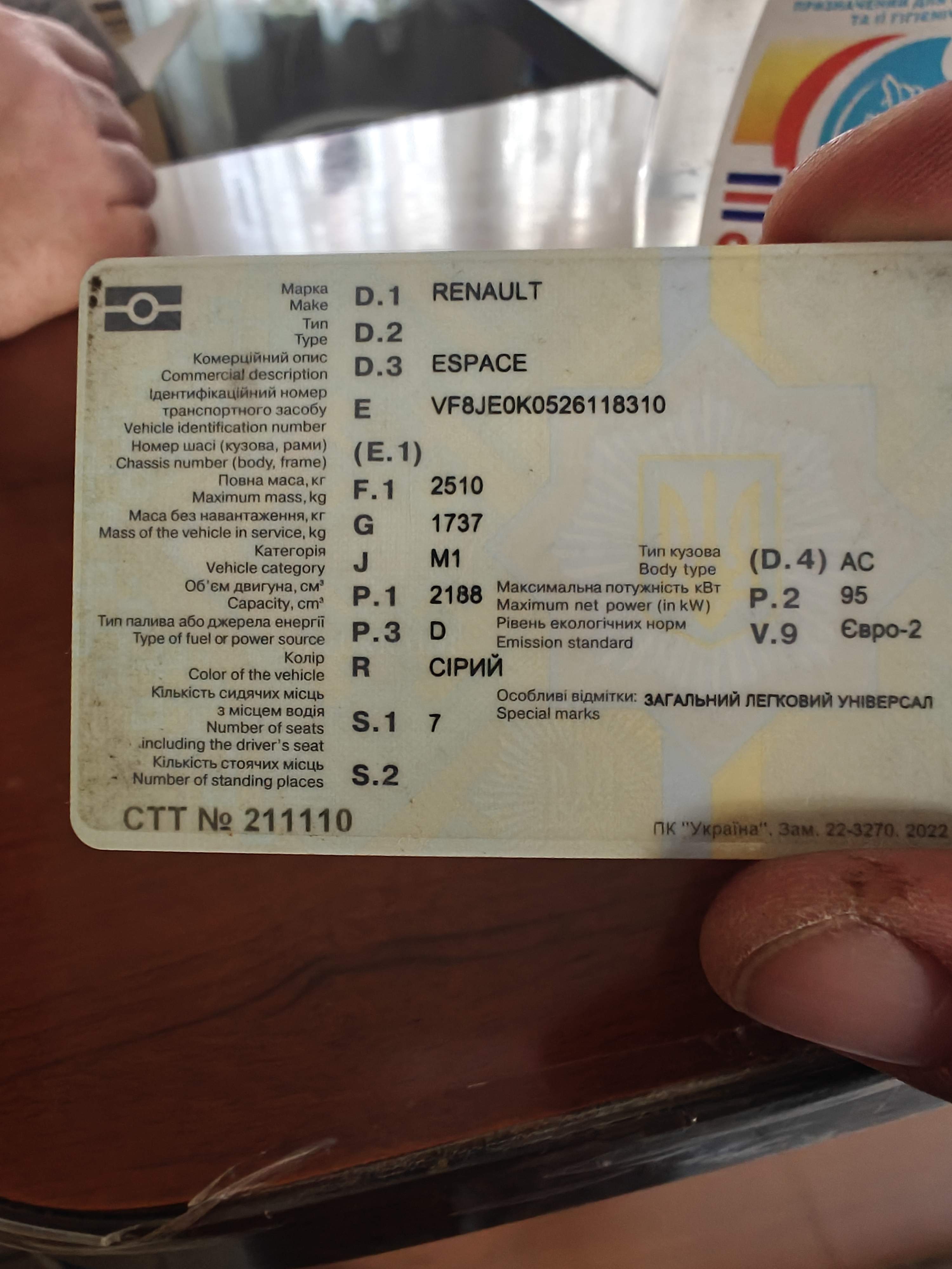 Tüüpidel on üks annetatud renu Espace 2002 aastast, millel süütelukk puru.