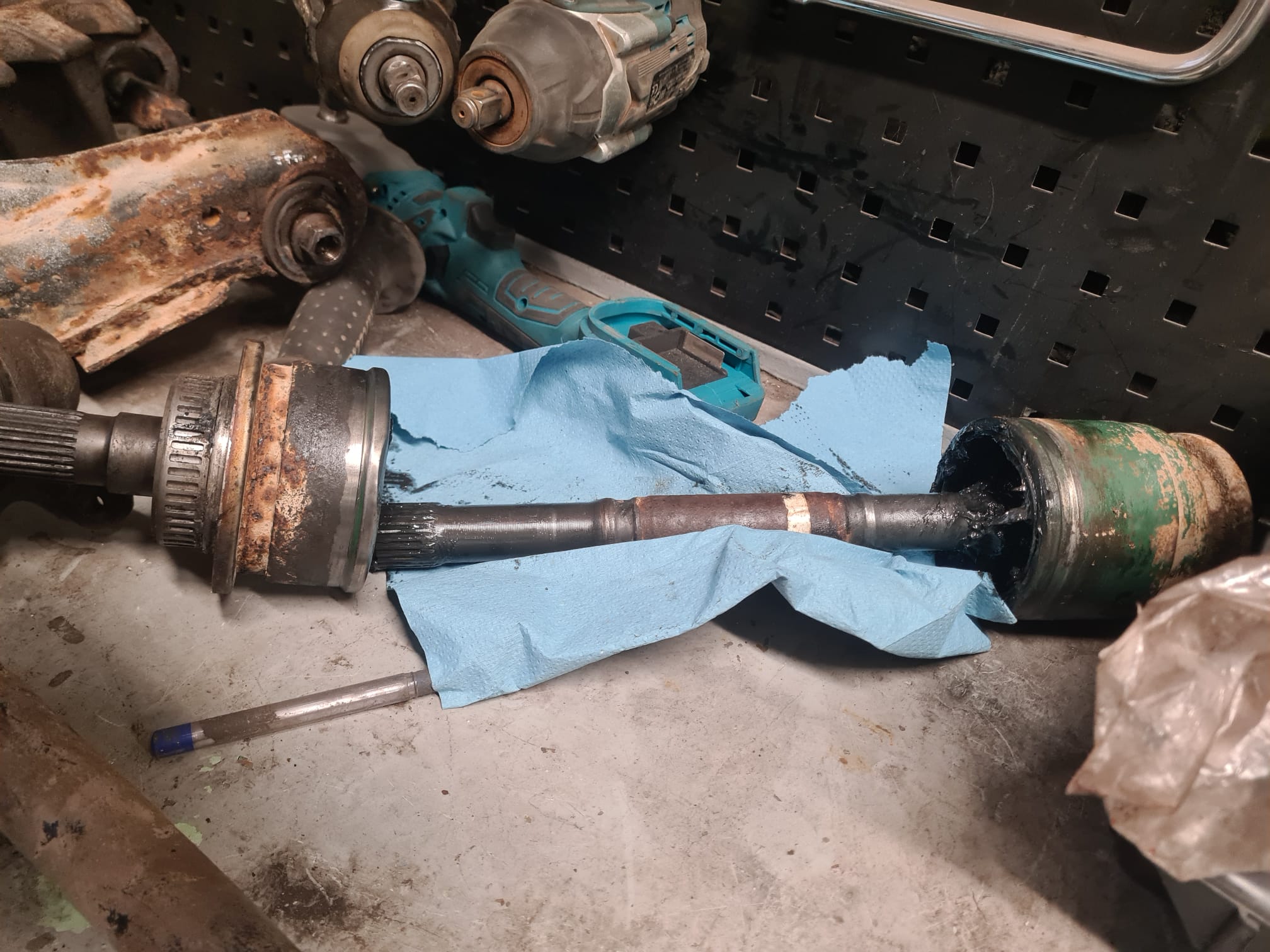 Mind  vihm nii väga ei köitnud ja otsisin tubasemat tegevust. Paigaldasin Rangeri esimestesse pidurisadulatesse remontkomplektid, panin rooliotsad liikuma ja vahetasin katkise ära ning lõpuks võtsin veovõlli pooleks, et sinna uued kaitsekummid paigaldada.