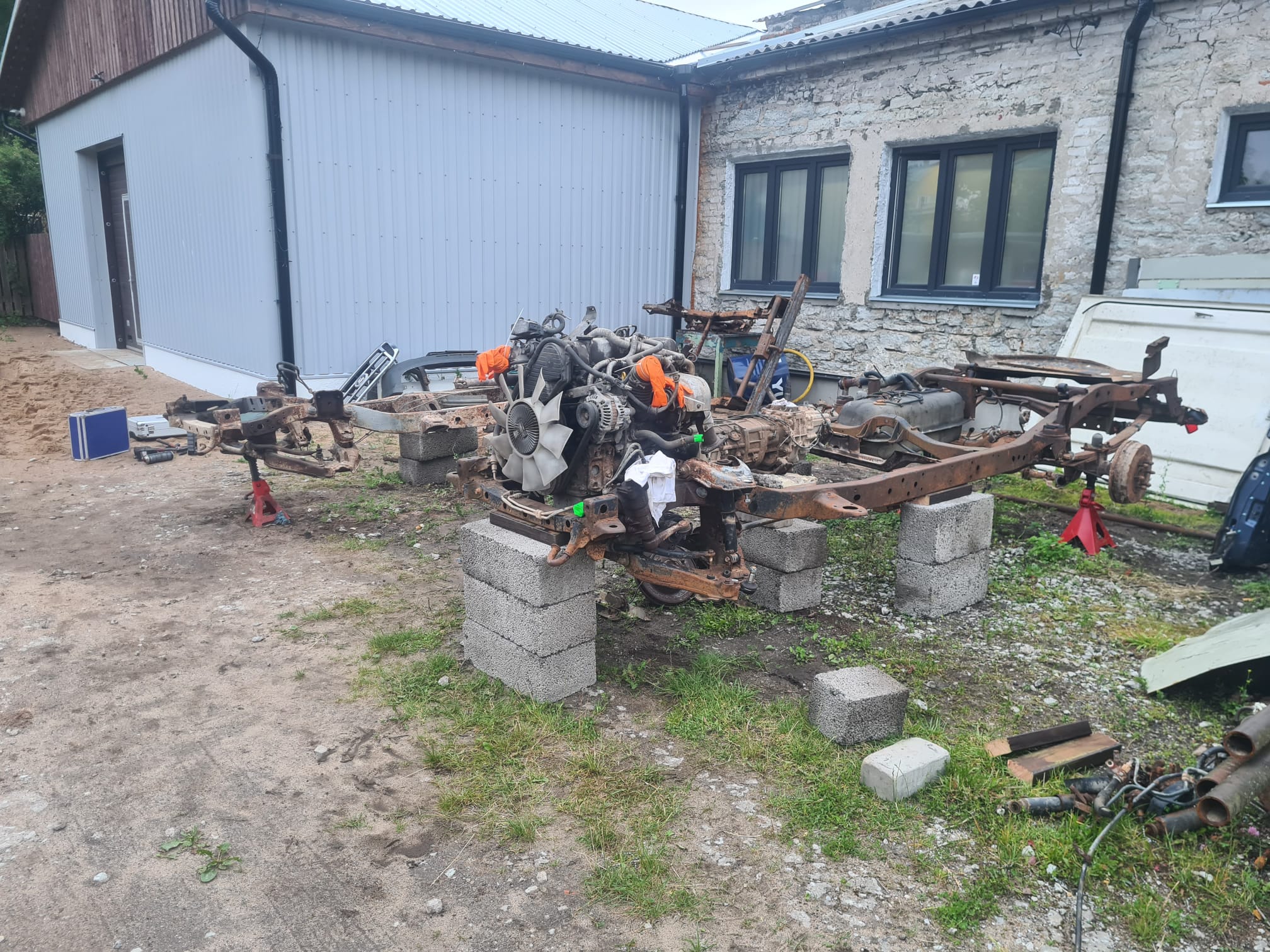 Raamivahetust läbivale Rangerile sai eile külge lõplikult tagasilt. Esimesed puksid jõudsid kohale. Lisaks käsipiduritrossid, paak vasak esimene õõts ja šarniirid. Uus raam on ilmselt pärit kuskilt romulast ja seal teadupärast lõigatakse maha ka need poldid, mida on kiirem lahti keerata. Nii et igal sammul tuleb kuumutada ja poolikuid polte ja manuseid eemaldada.