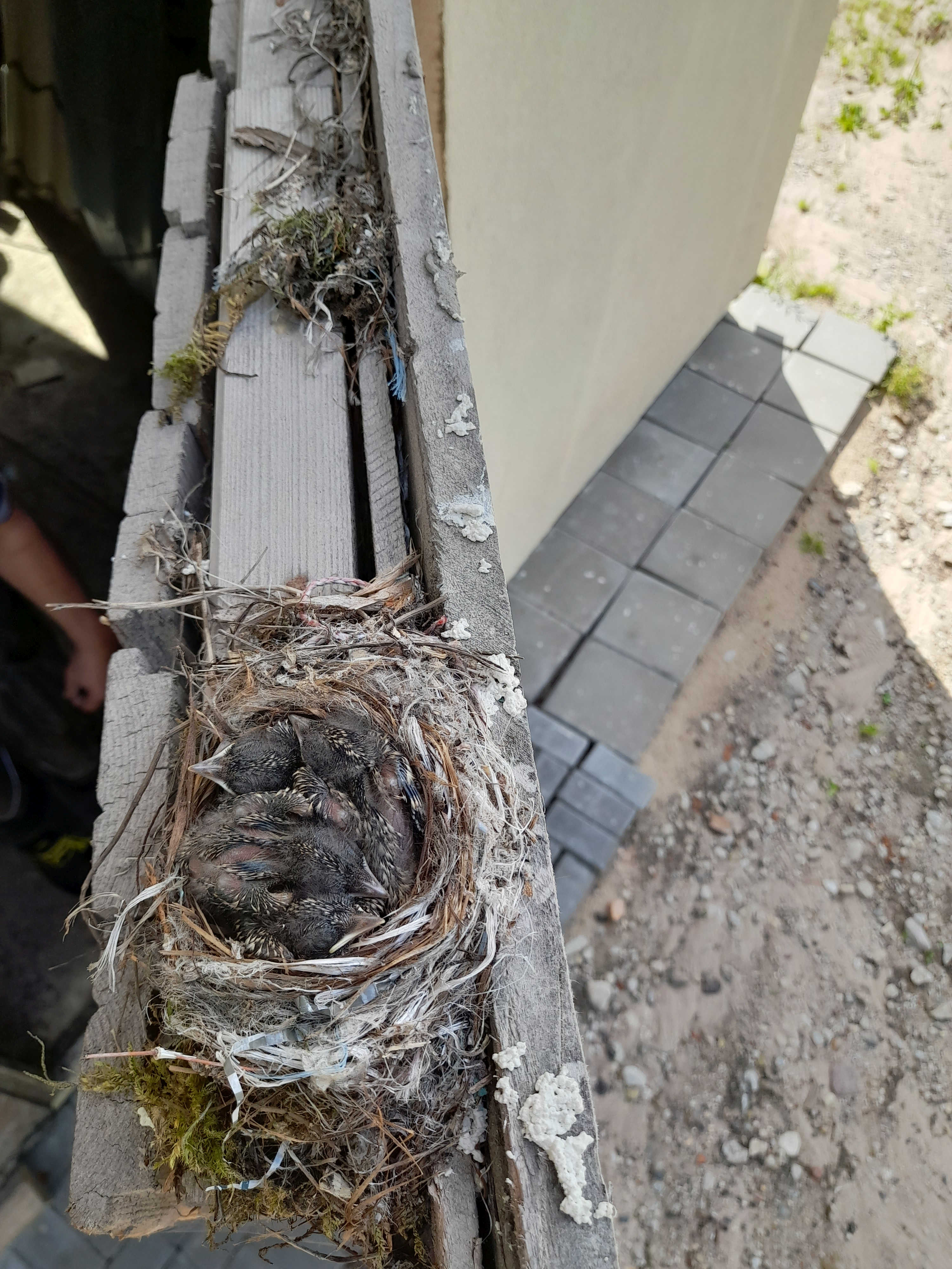 Aasta tagasi, leidsin garaaži ukse servalt pesa, kenasti koostatud, tühi. Nädala pärast paistis pesast peanupp, aga lähemat uurimist ei lubatud, tõusis vurinaga lendu. Hädavajadusel sai paar korda ust avatud, aga see ei seganud. Peatselt olid pesas juba munad ja veel mõne aja pärast kostis näljast vidinat, kui vanemad liig aeglaselt end liigutasid. Kui paari meetri pealt fotosessioon korraldati, siis oli vaikus ja rahu, pesapõhja kattis vaid suletekk. Veel mõned päevad ja üle serva küünitasid 4 nokka mis pidevalt ootel.