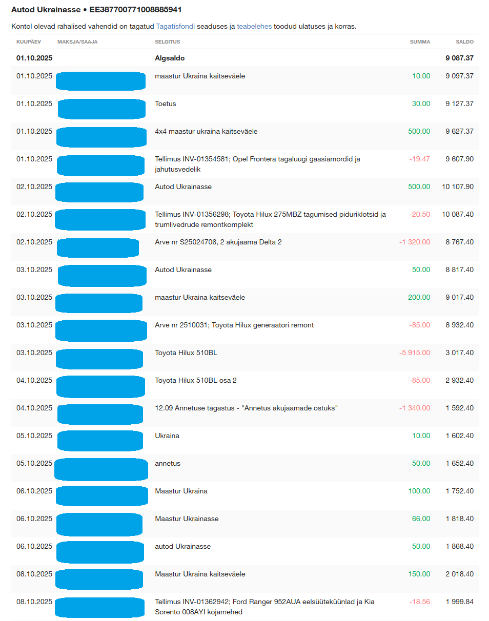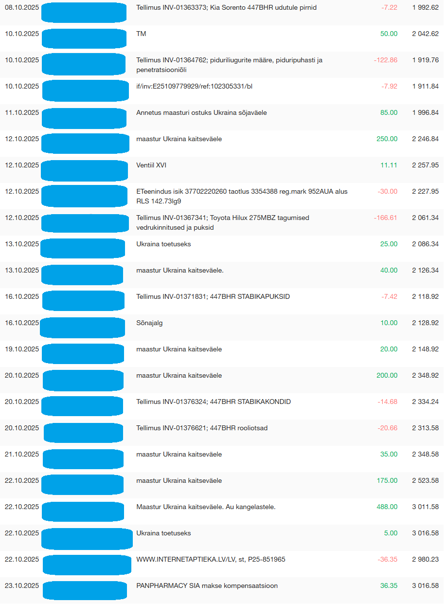 Väikse hilinemisega panen siia ka Põhja-Tallinna abiüksuse oktoobri kontoväljavõtte