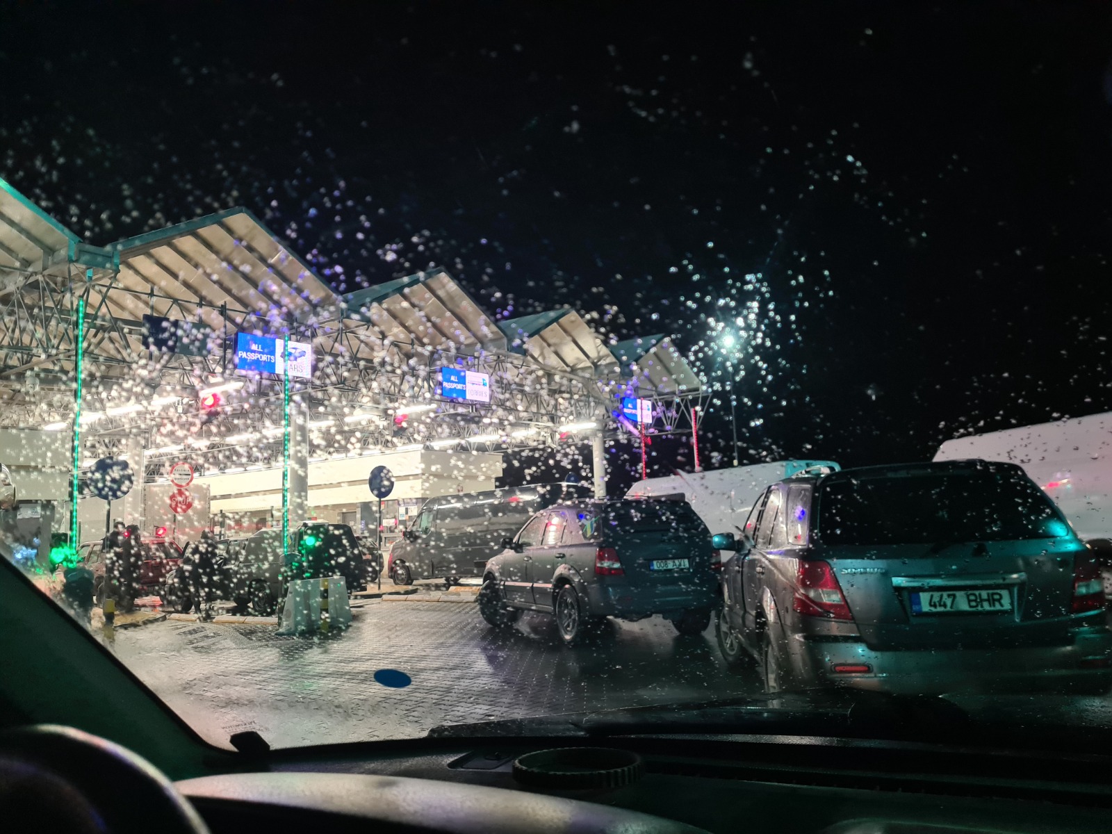 Reede hommikul kell 9 startisime edasi Zosin/Ustiluh piiripunkti poole. Natuke oli teel vaja teostada ka pisiremonti ja peatusi oli tänu sellele veidi enam. Ühtlasi tuli Lõuna-Poolas maha 10cm lund. Meil olid all suverehvid ja korralikud ksf Dexter ja ühe teise ksf annetatud naelrehvid pagassis. Poolas on naelad keelatud ja nõme tundus neid välja kiskuda, sest Ukrainas kuluvad marjaks ära. Nii et liikumistempo oli aeglane aga kell 17:30 olime piiripunktis. Tavajärjekorda ei olnud ja sõitsime otse tõkkepuu alt sisse. Seal kohtusime aga sootuks kurja naisterahvaga, kes karjus meie peale ja käskis humanitaarabil transiidijärjekorda minna. See oli šokeeriv aga kuna piiril kehtivad ikka piirivalvurite reeglid siis sõitsime uuesti tõkkepuu alt välja. Nüüd jäime tõkkepuu taha 8 autoga passima. Kuna transiidijärjekord oli kilomeetreid pikk siis olid variandid, kas sõita järgmisesse punkti või proovida ennast ikka uuesti sisse rääkida. Läksime siis kahekesi asja arutama ja lähenesime väga empaatiliselt, et küll sel neiul on ikka raske töö ja et piiril on kõik nii teist moodi kui Eestis jne.  Vestlust ei teinud lihtsamaks see, et see toimus poola keeles, kuhu  oli lisatud mõni vene keelne sõna ja meie poolt vene keeles, millele lisasime mõne poolapärase sulghääliku. Piirivalvur arvas, et transiidijärjekorrast saaksime heal juhul üle järgmisel päeval. Leppisime siis kokku, et me oleme ikka hoopis turistid ja võime minna uuesti tavajäejekorras piirialasse. Sealt edasi sujus kõik ladusalt ja alates esmakordselt piiripunkti saabumisest kuni viimase auto väljumiseni Ukrainas kulus minut alla 2 tunni.