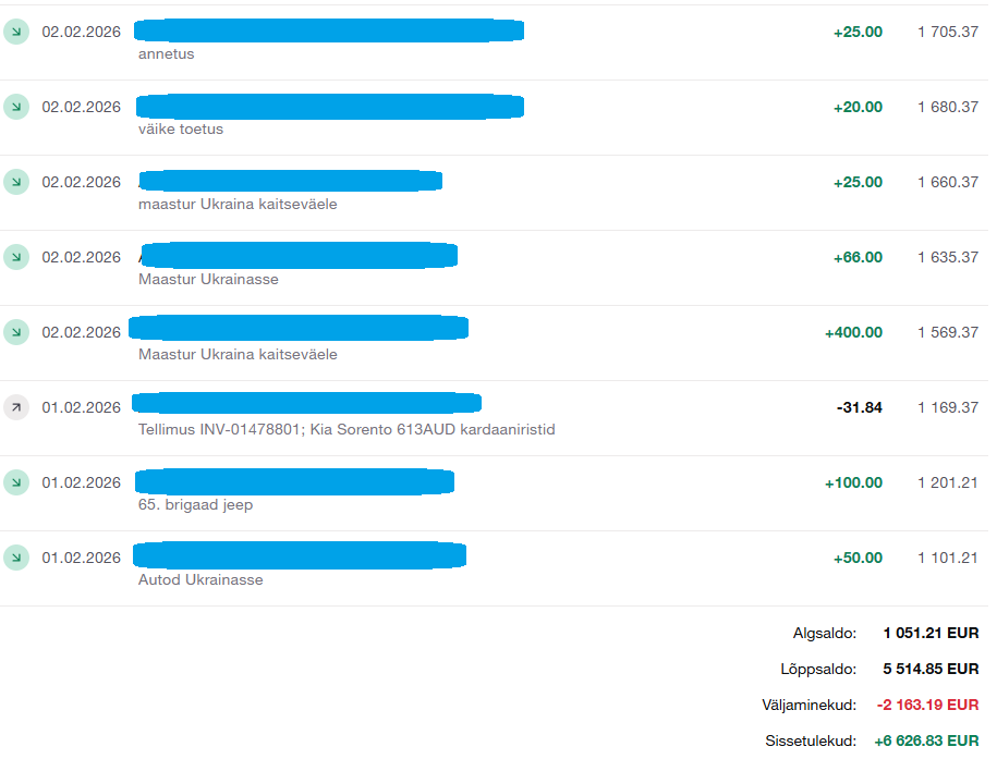 Lisan siia veebruari Põhja-Tallinna abiüksuse kontoväljavõtte