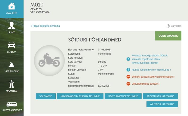 Me võime asju kirjeldada erinevate nimedega, kuid selle toimingu REAALSELT läbi teinud sõidukiomanikud ei pea arvama ega oletama, vaid saavad rääkida reaalsest kasutajakogemusest. Kui avada Transpordiameti e-teeninduses OMANIKUNA sisselogituna sõiduki registriandmete kaart, siis on üldandmete juures sinised erinevad nupud. Üks nendest on AJUTINE KUSTUTAMINE. Sellele nupule vajutades rakenduvad järgmised sammud, mille käigus tuleb muuhulgas sõiduki olemasolu tõendada tehes fotod tehasetähisest, andmesildist ja sõidukist neljast erinevast suunast. Kui tehasetähis või andmesilt puudub, siis on mõistlik teha foto nende eeldatavast asukohast. Aasta alguses olnud rakenduse piirangud, mis ei lubanud mittesobivate piltidega edasi liikuda, on kõrvaldatud. Kui riigilõivu tasumisel ei teki kohe maksekinnitust, siis tasub vajutada tagasi nuppu ja vaadata, kas ettemaksukontole on see raha laekunud. Sellisel juhul saab ettemaksukonto kaudu toimingut edasi teha. Ja kõige viimane samm on see, et TRAM ametnik vaatab need pildid üle ning kinnitab ajutise kustutamise või küsib lisainfot.