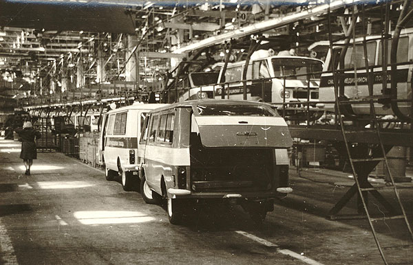 paar fotot Riia Autotehasest, konveieril mikrobussid RAF-2203