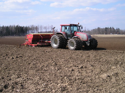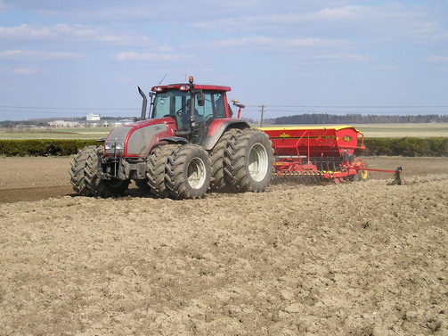 Teema esimestel piltidel on traktor Valtra Rootsi päritolu kombineeritud külvikuga Väderstad möödund aasta kevadel Viiratsi lähedal otse sügisel küntud põllule külvamas: