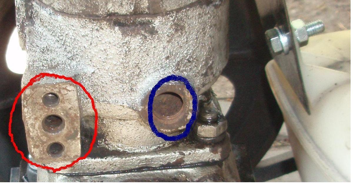 Punase ringiga tähistatud kohta käib õhusurve regulaator ja teise auku jahutus voolik kust käib originaalis vesi läbi.